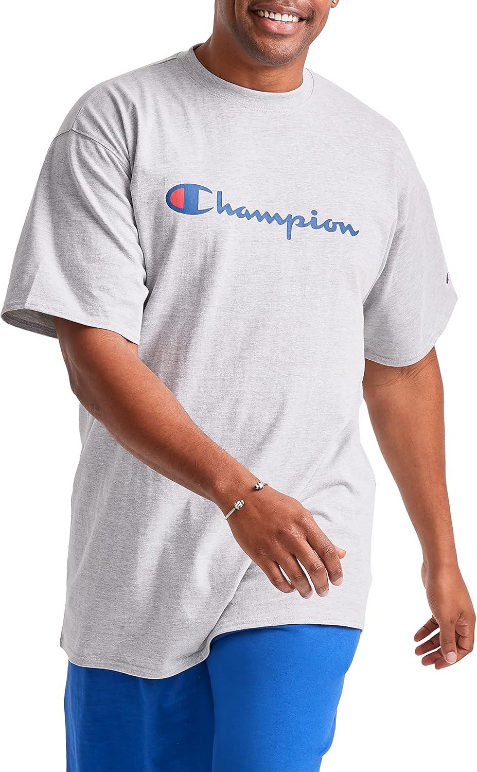 Champion Men’s Classic Graphic Short Sleeve T-Shirt, Script Logo (Reg. Or Big & Tall)(Oxford Gray Script)