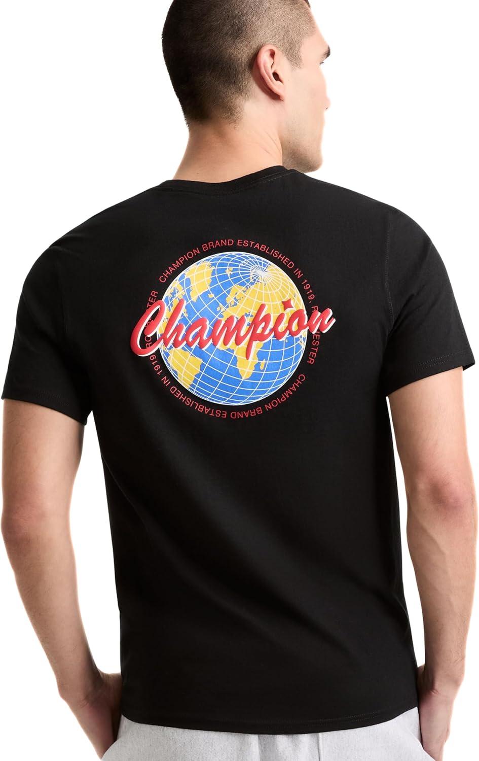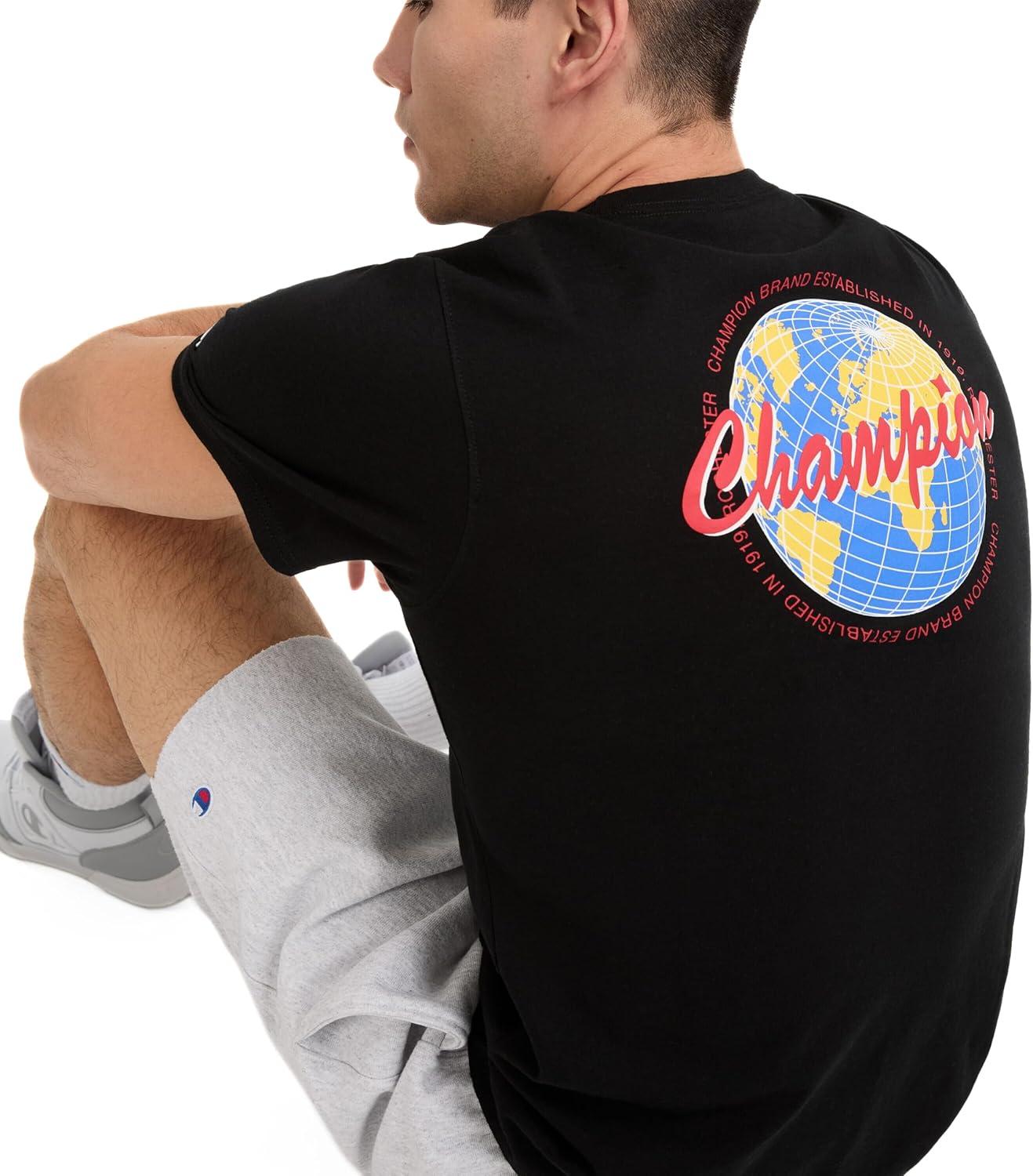 Champion Men’s Heritage Short Sleeve Tee, Men’s T-Shirts, Vintage Shirts, Men’s Tee Shirts, Graphics(Black – Globe)