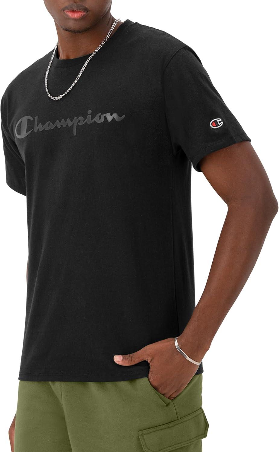 Champion Men’s Heritage Short Sleeve Tee, Men’s T-Shirts, Vintage Shirts, Men’s Tee Shirts, Graphics(Black – Tonal Script Logo)