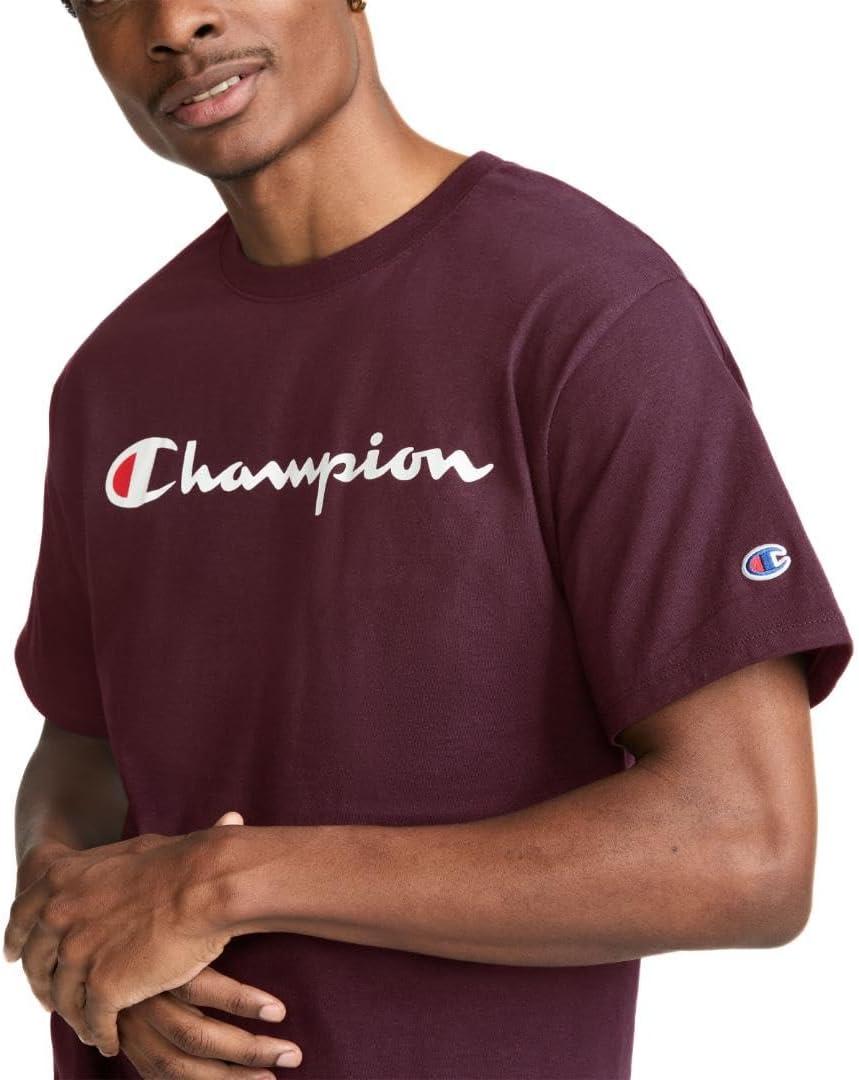 Champion Men’s Heritage Short Sleeve Tee, Men’s T-Shirts, Vintage Shirts, Men’s Tee Shirts, Graphics(Maroon – Classic Script Logo)