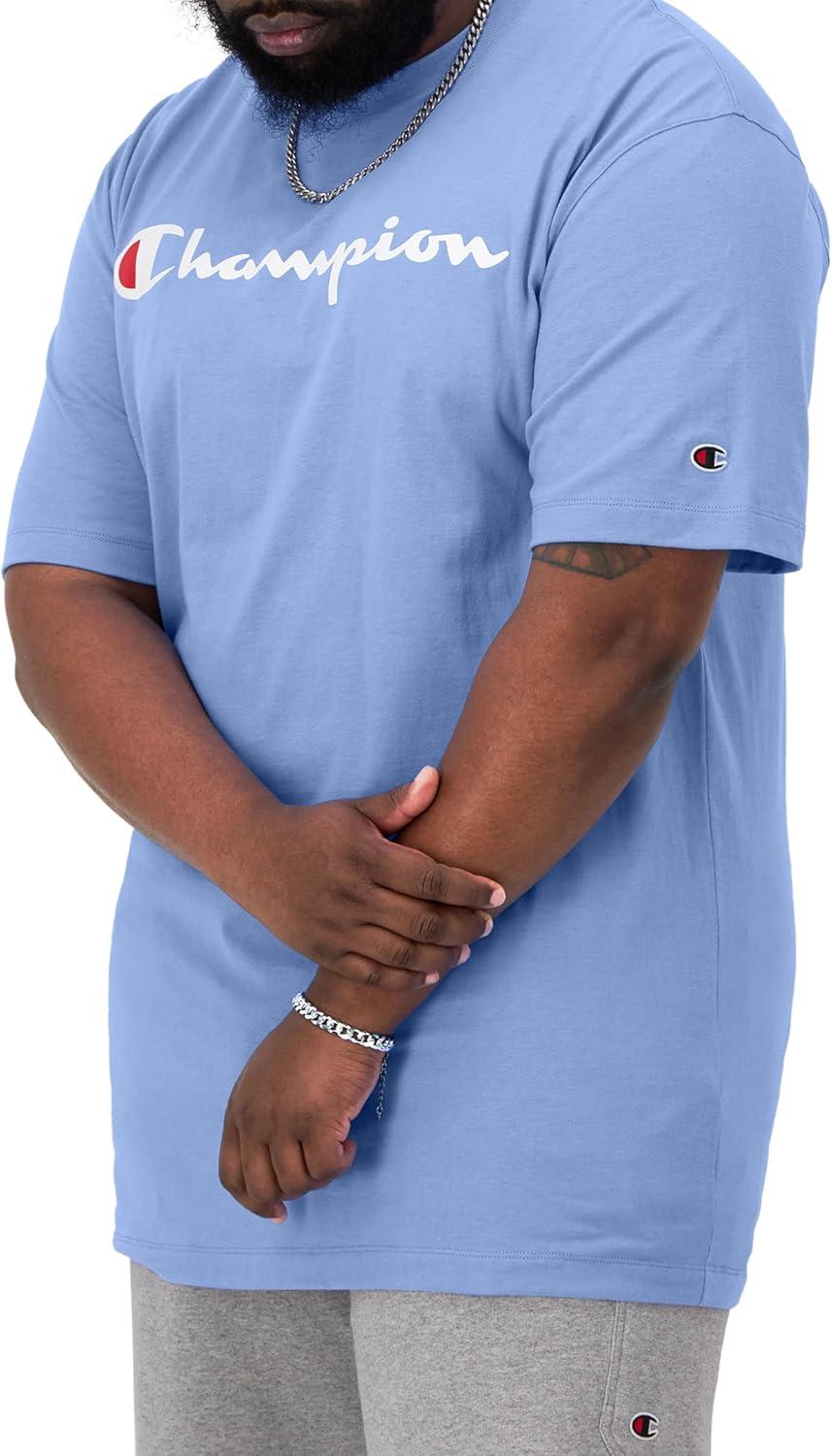 Champion Men’s Classic Graphic Short Sleeve T-Shirt, Script Logo (Reg. Or Big & Tall)(Light Steel-y06802)