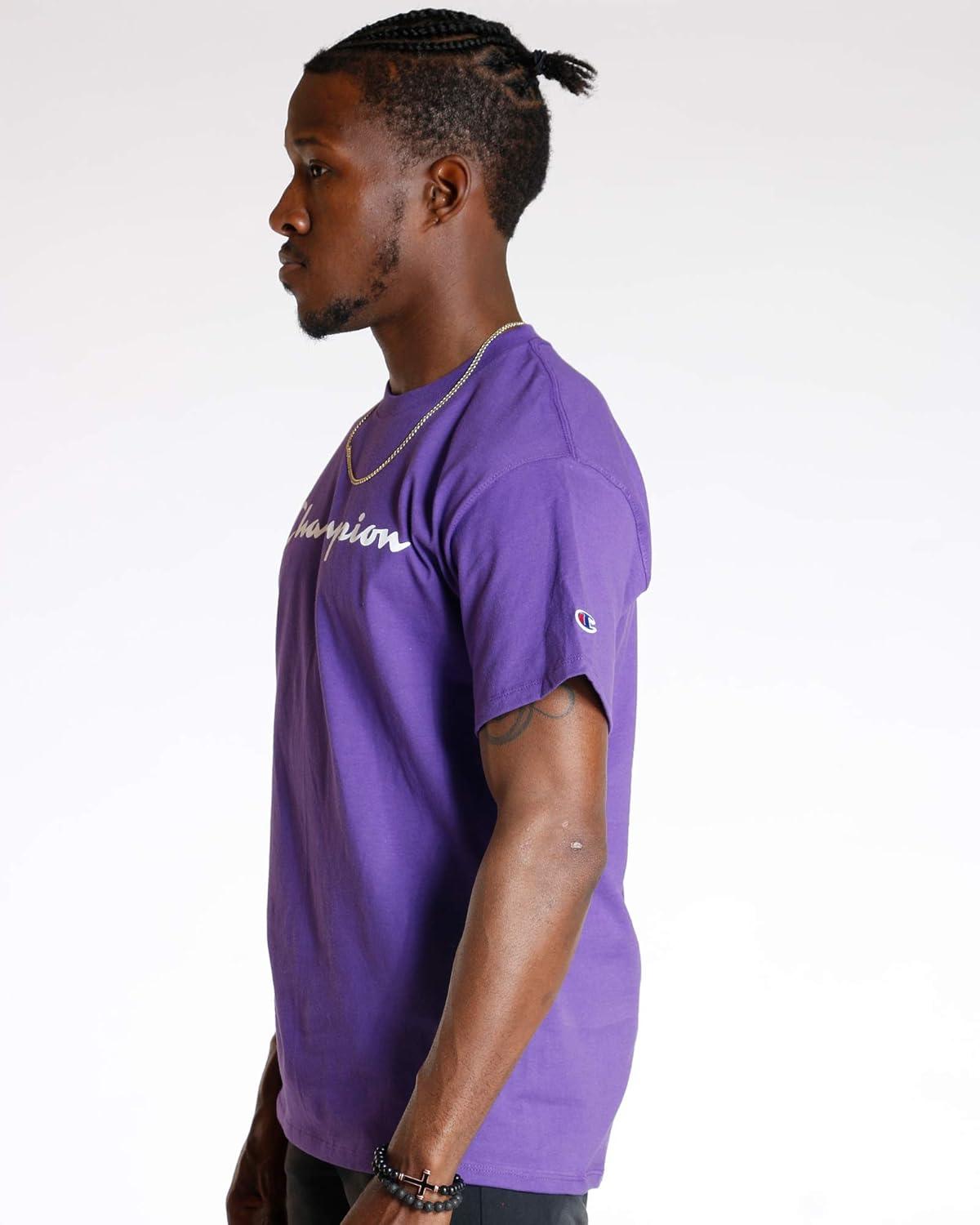 Champion Men’s Heritage Short Sleeve Tee, Men’s T-Shirts, Vintage Shirts, Men’s Tee Shirts, Graphics(Purple Pr – Classic Script Logo)