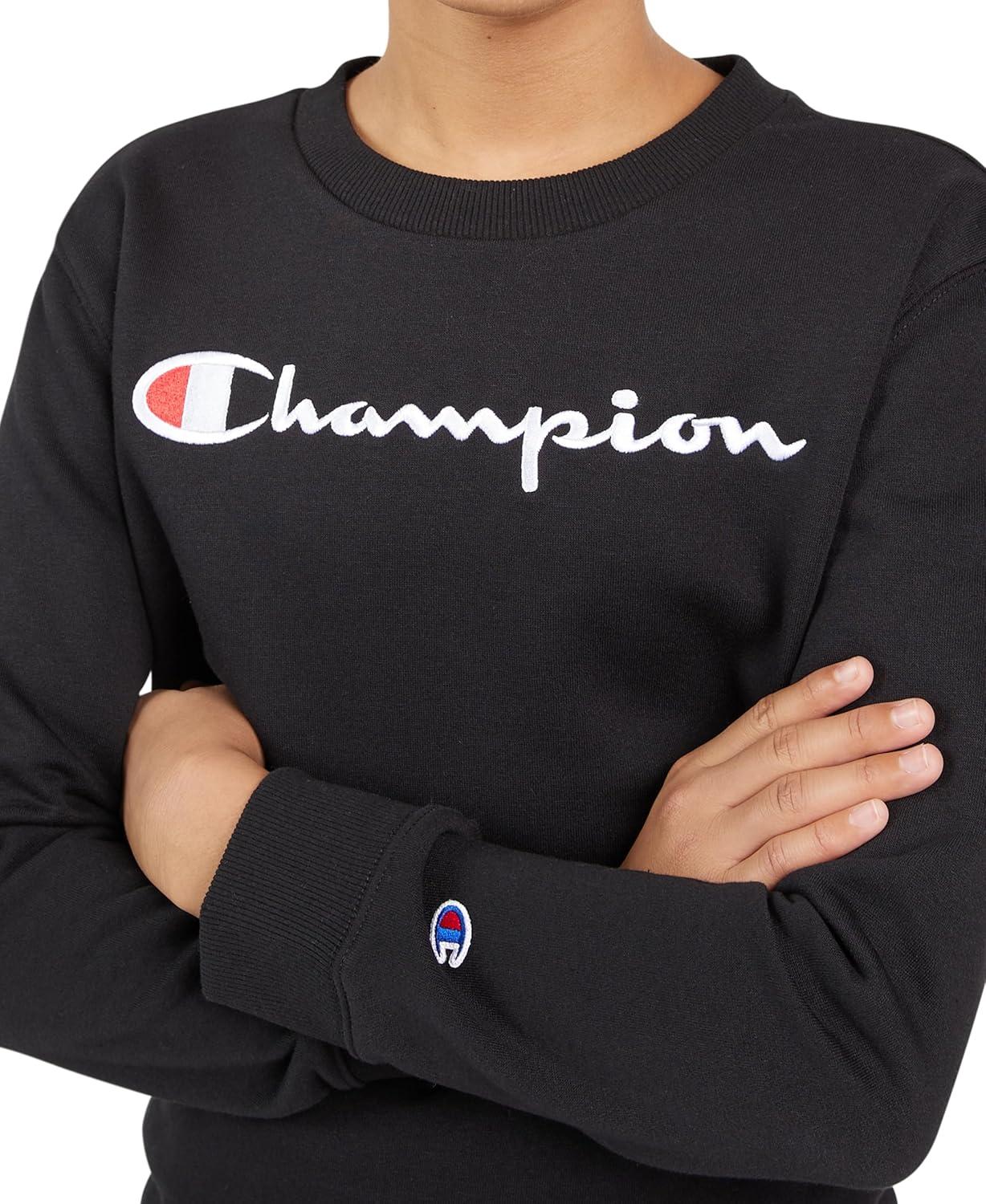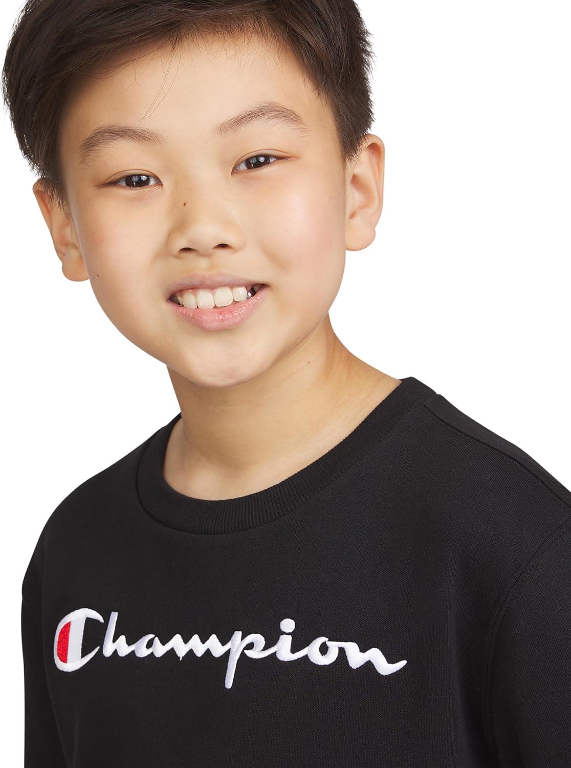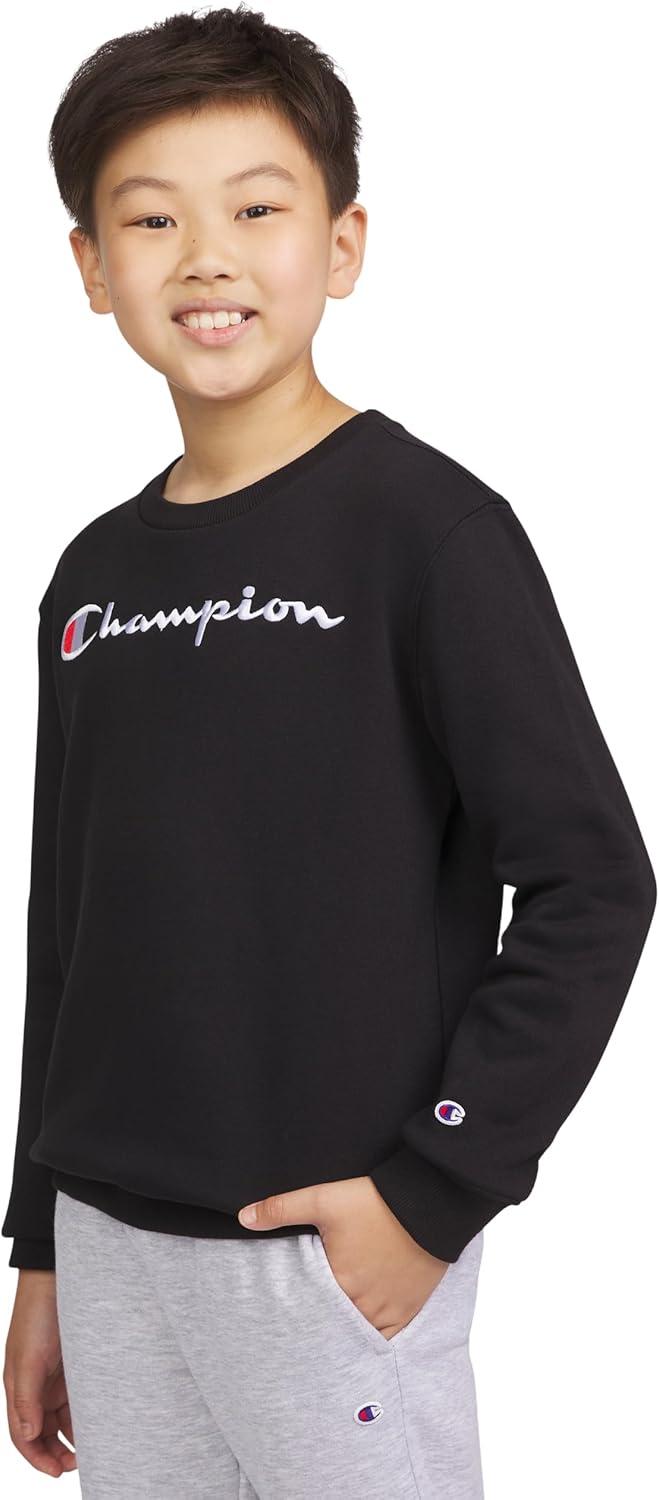 Champion Boys Sweatshirt for Kids Pullover Fleece Crewneck Sweater(Signature Dark Black)