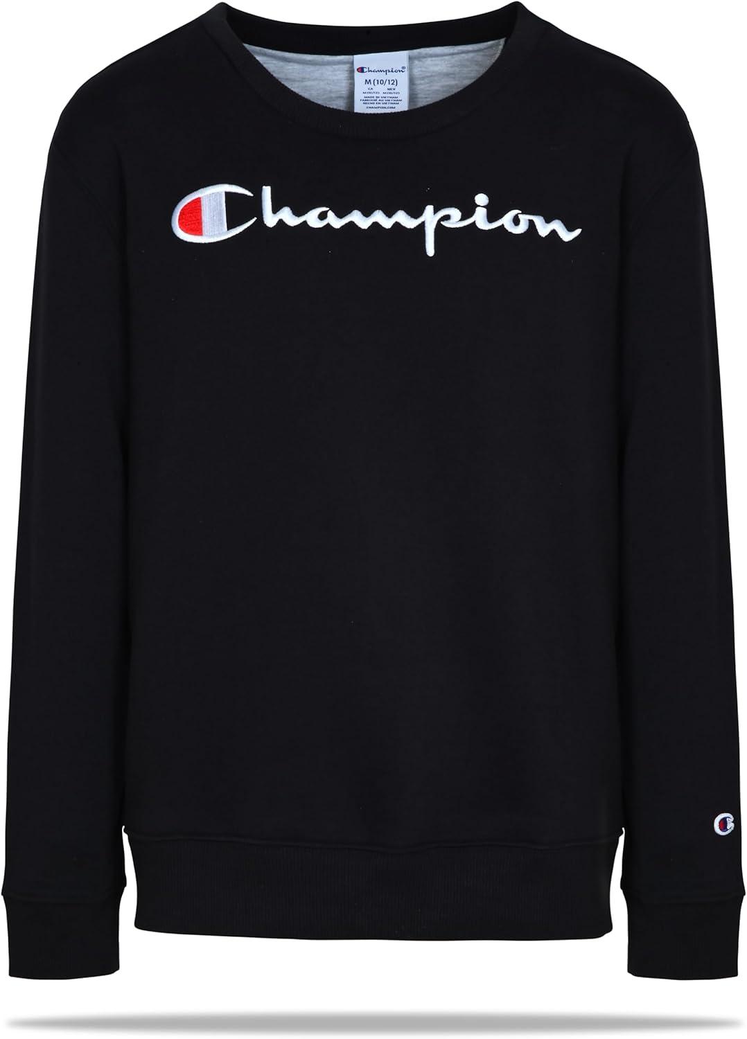 Champion Boys Sweatshirt for Kids Pullover Fleece Crewneck Sweater(Signature Black)