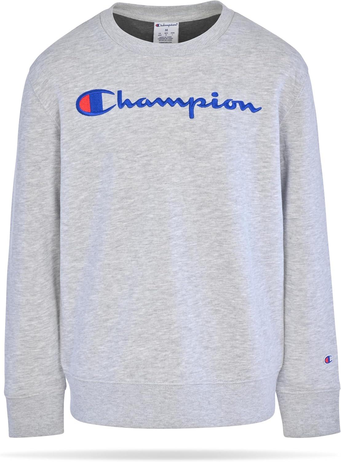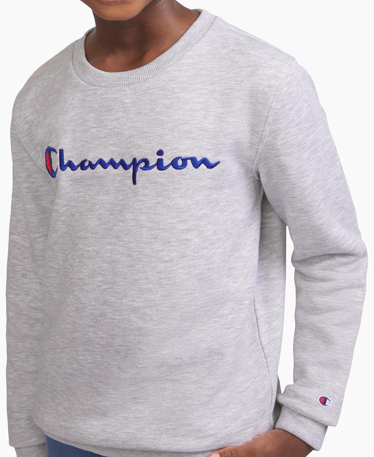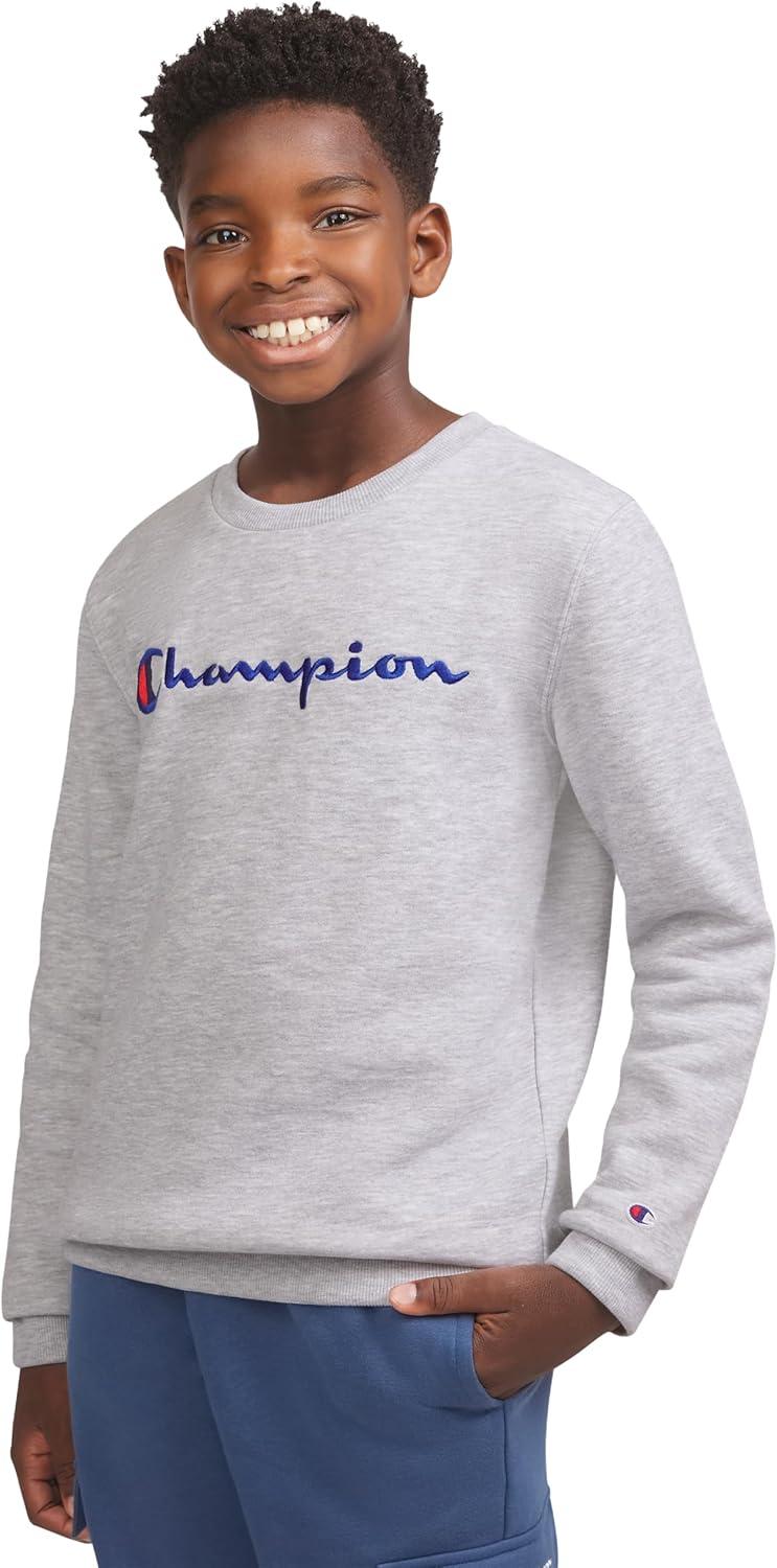 Champion Boys Sweatshirt for Kids Pullover Fleece Crewneck Sweater(Signature Grey Heather)