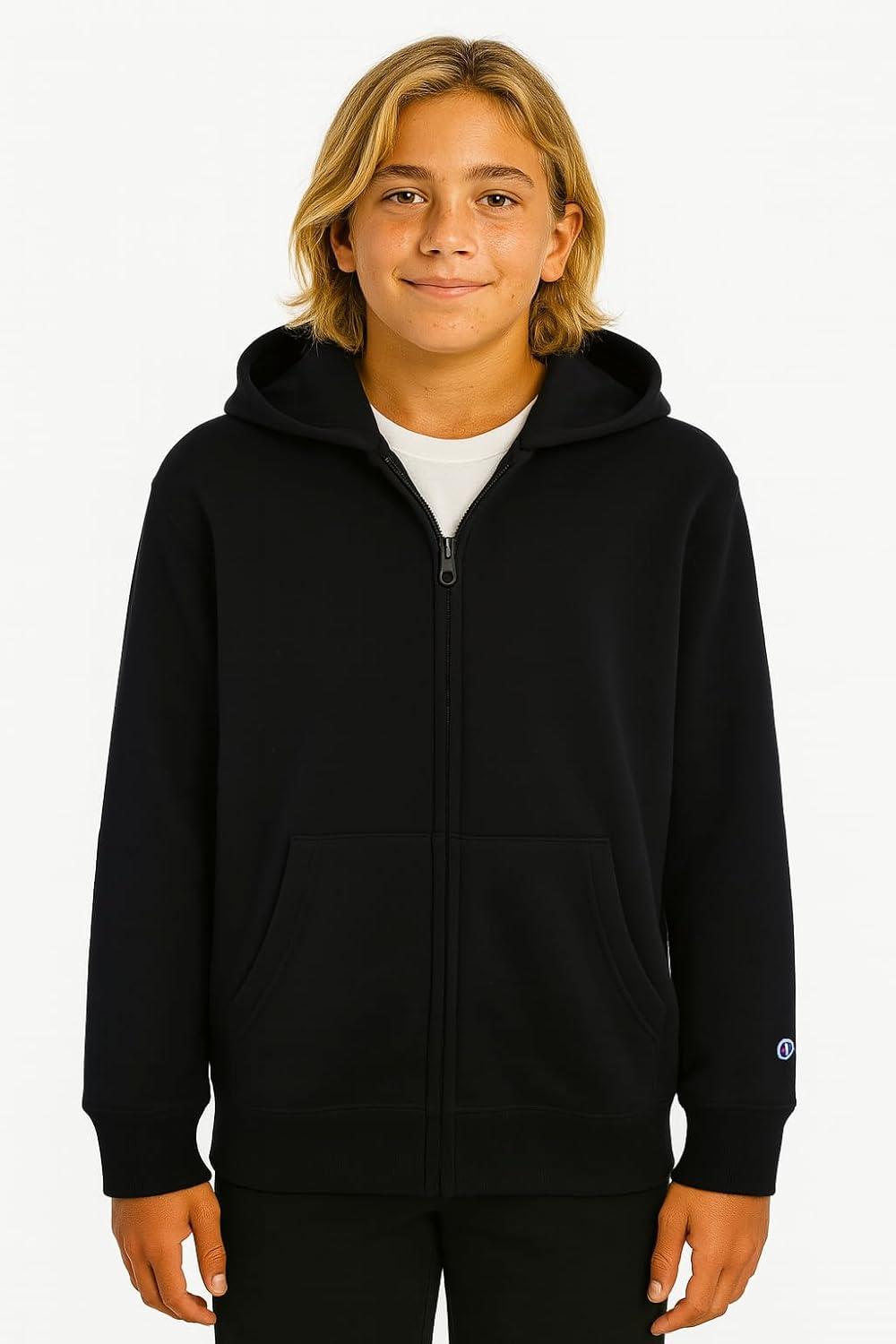 Champion Boys Zip Front Fleece Hoodie Sweatshirt for Kids(Black)