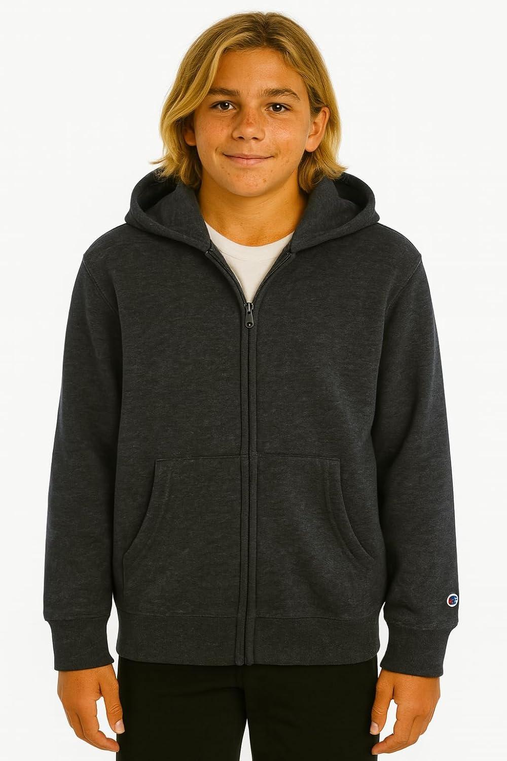 Champion Boys Zip Front Fleece Hoodie Sweatshirt for Kids(Charcoal Heather)