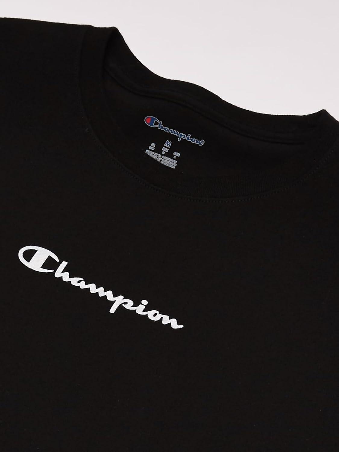 Champion Men’s Heritage Short Sleeve Tee, Men’s T-Shirts, Vintage Shirts, Men’s Tee Shirts, Graphics(Black – Script Logo)