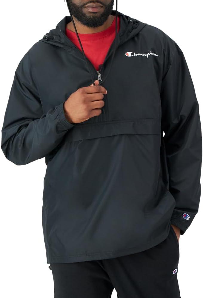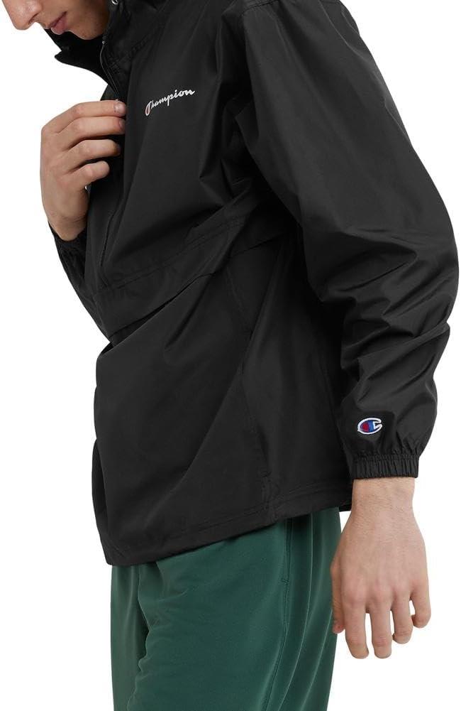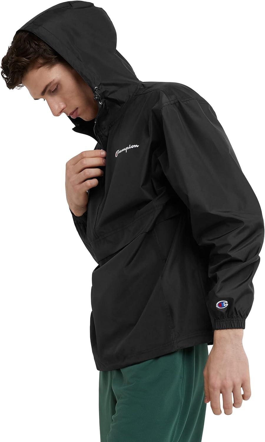Champion Men’s Jacket, Stadium Full-zip Jacket, Wind Resistant, Water Resistant Jacket for Men(Black Small Script)