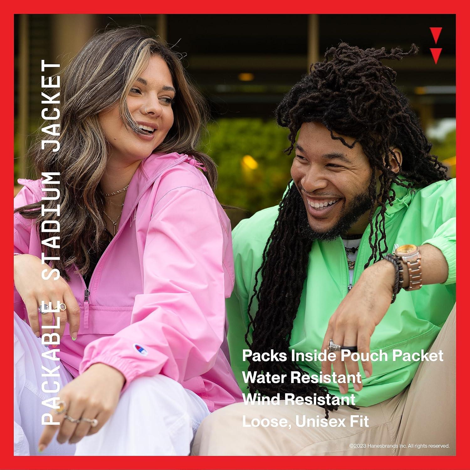 Champion Men’s Jacket, Stadium Full-zip Jacket, Wind Resistant, Water Resistant Jacket for Men(Surf the Web Small – Small Script Logo)