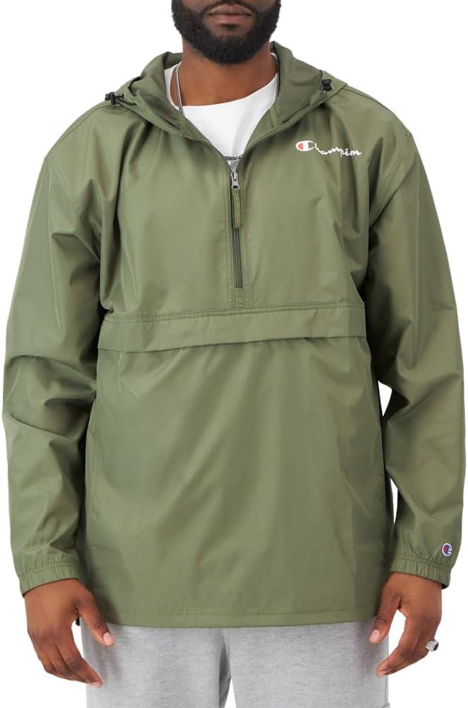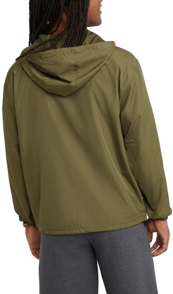 Champion Men’s Jacket, Stadium Full-zip Jacket, Wind Resistant, Water Resistant Jacket for Men(Cargo Olive Small – Small Script Logo)
