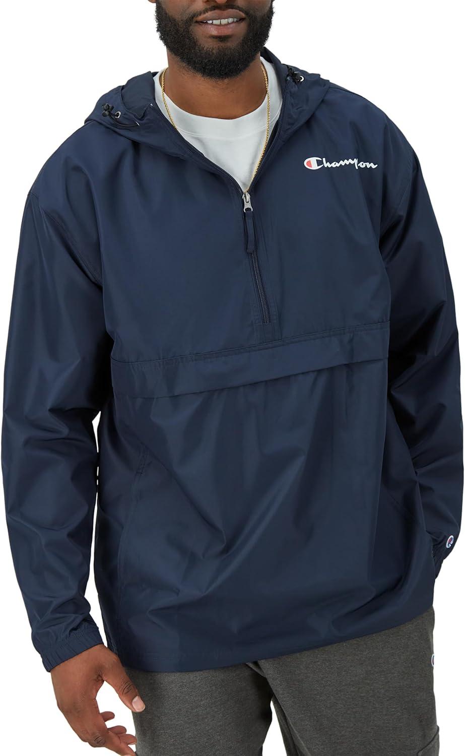 Champion Men’s Jacket, Stadium Full-zip Jacket, Wind Resistant, Water Resistant Jacket for Men(Navy Small – Small Script Logo)