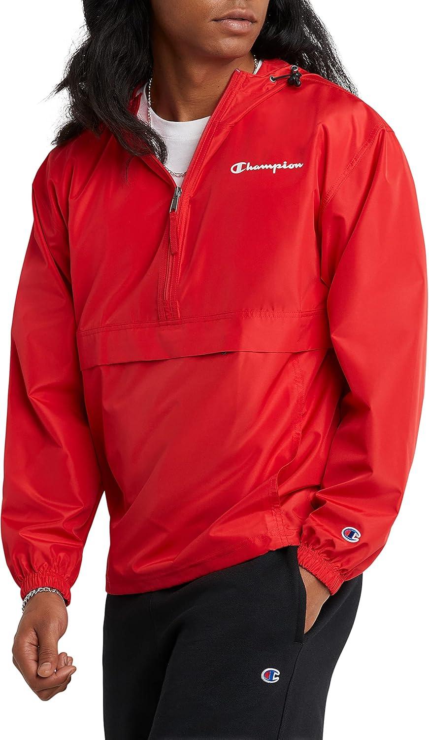 Champion Men’s Jacket, Stadium Full-zip Jacket, Wind Resistant, Water Resistant Jacket for Men(Scarlet Small – Small Script Logo)