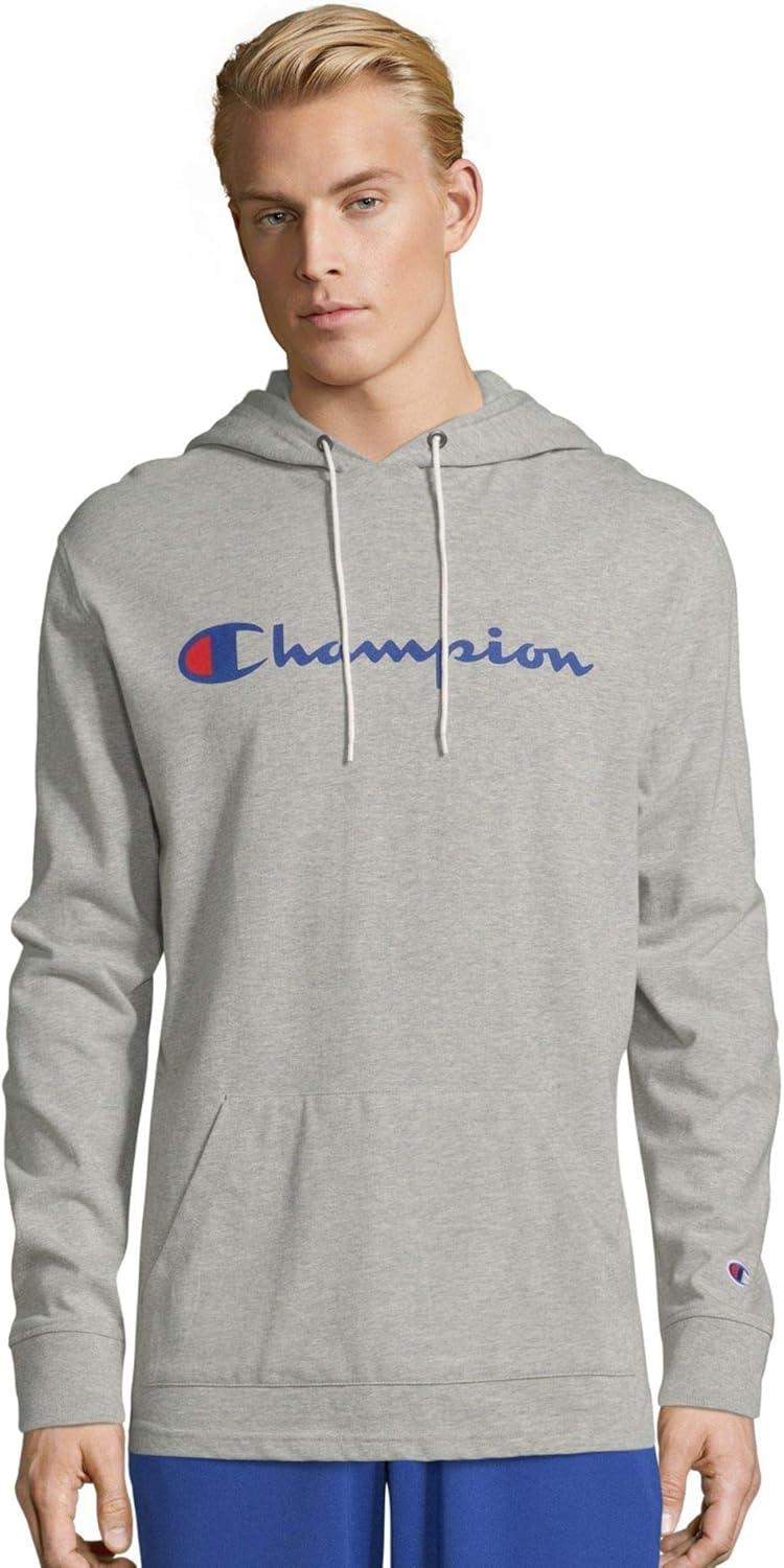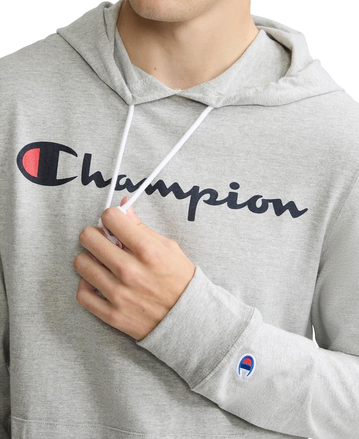 Champion Men’s Long Sleeve T-shirt Hoodie (Retired Colors)(Oxford Gray – Classic Script Logo)