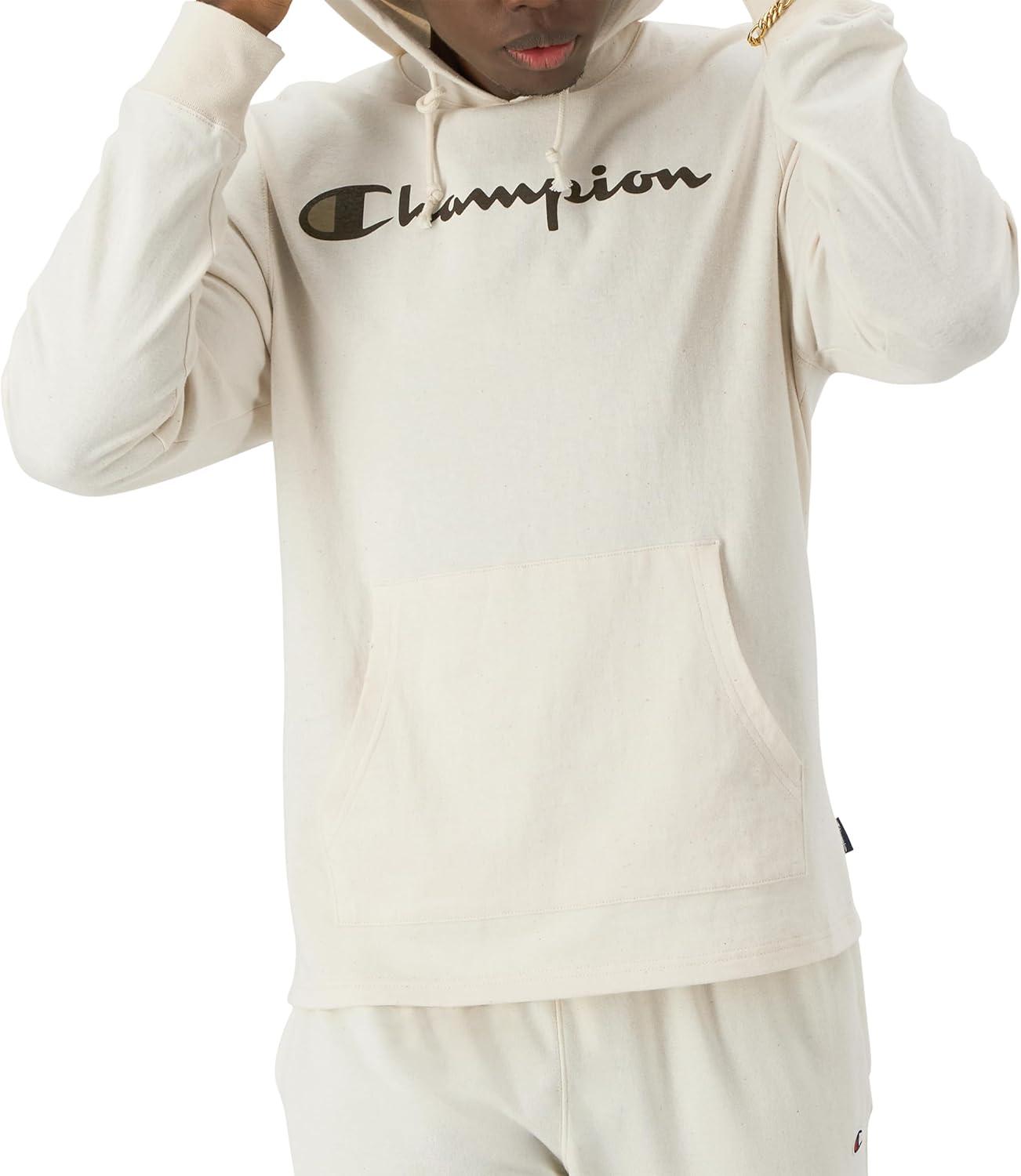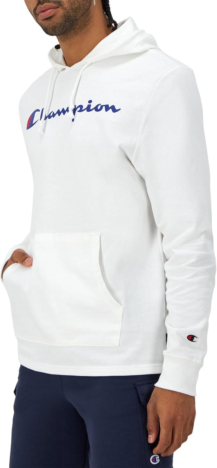 Champion Men’s Fleece Script Logo Hoodie (Reg. Or Big & Tall)(White – Classic Script Logo)