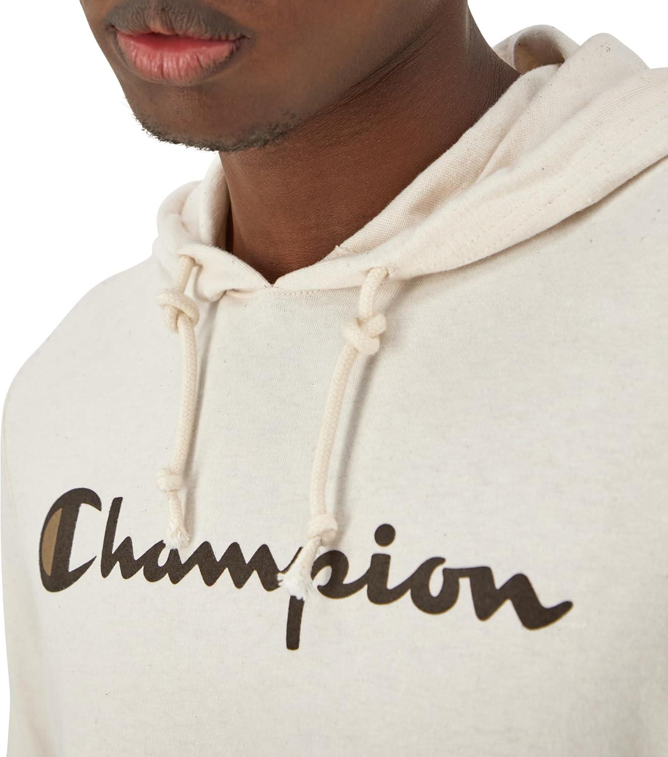 Champion Men’s Fleece Script Logo Hoodie (Reg. Or Big & Tall)(Oatmeal Heather – Classic Script Logo)