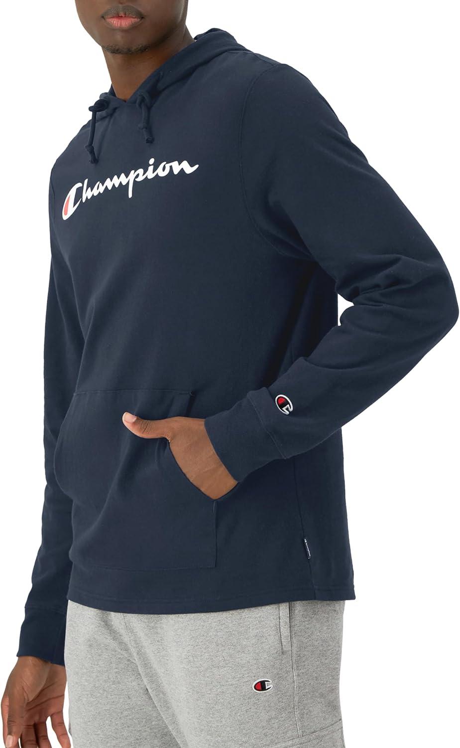Champion Men’s Fleece Script Logo Hoodie (Reg. Or Big & Tall)(Navy – Classic Script Logo)