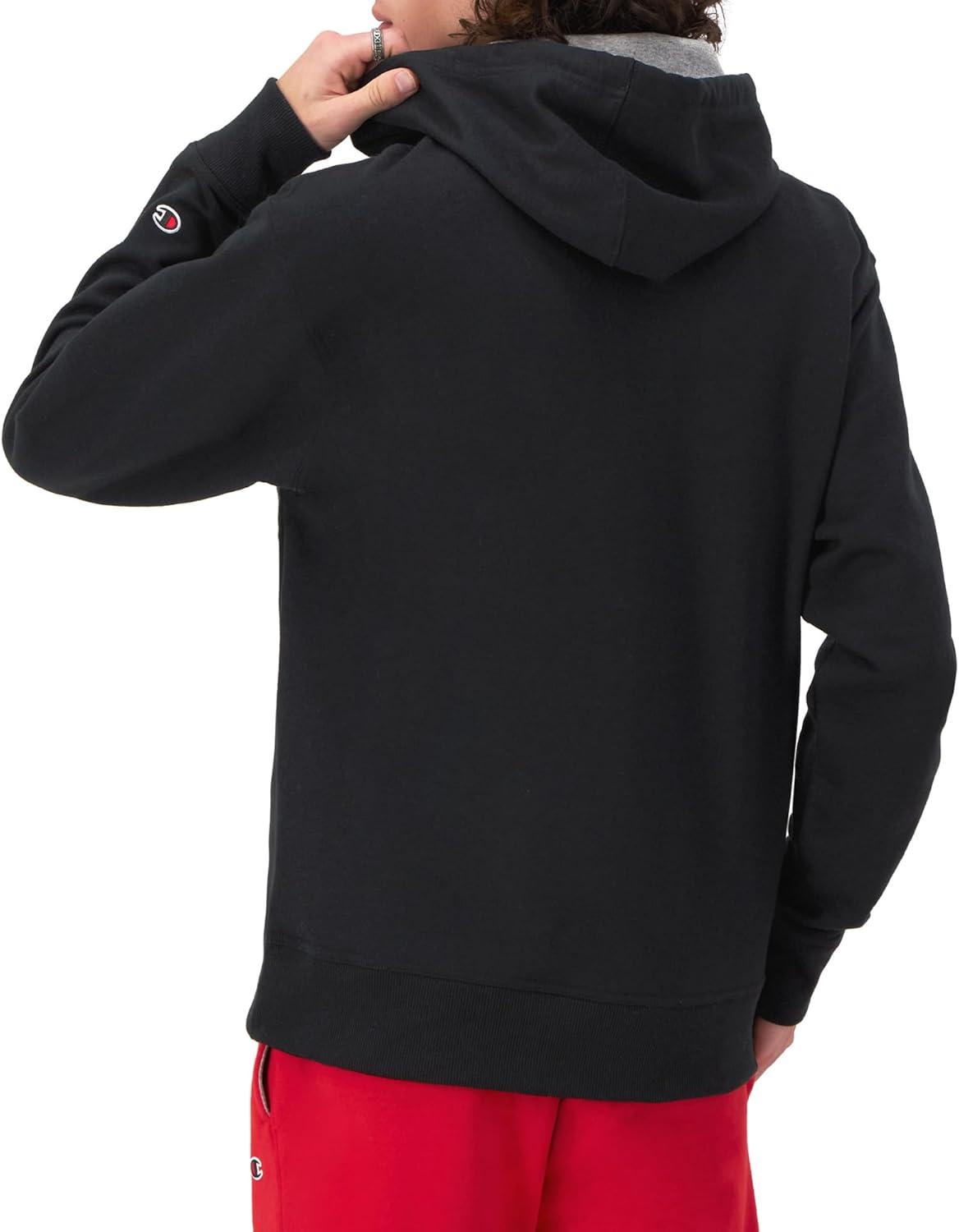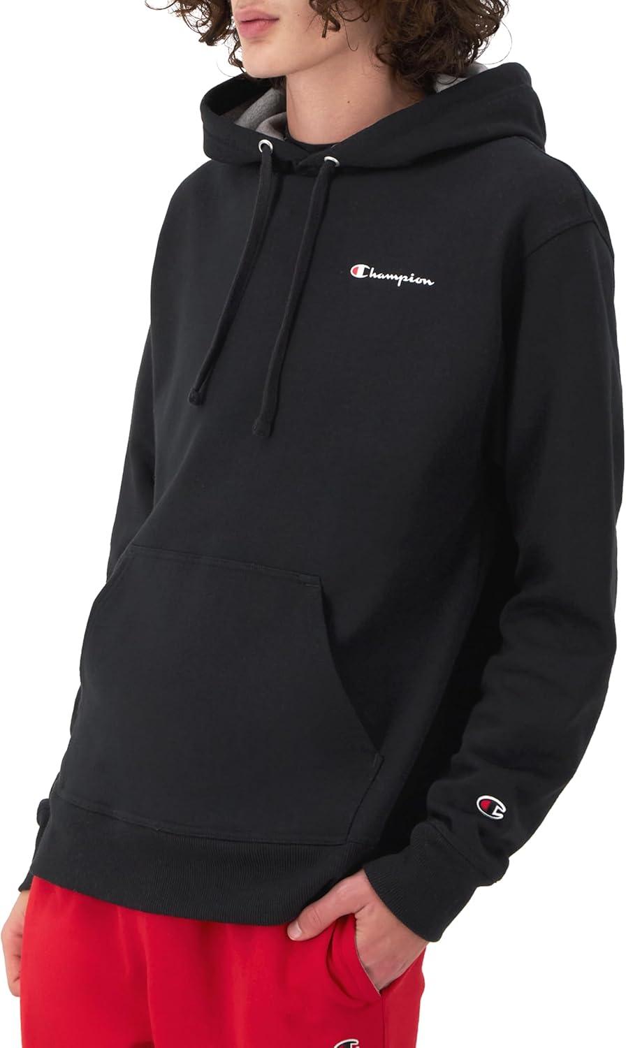 Champion Men’s Pullover Fleece Hoodie, Standard Fit, Midweight, C Logo, Available in Regular and Big & Tall(Black – Small Script Logo)