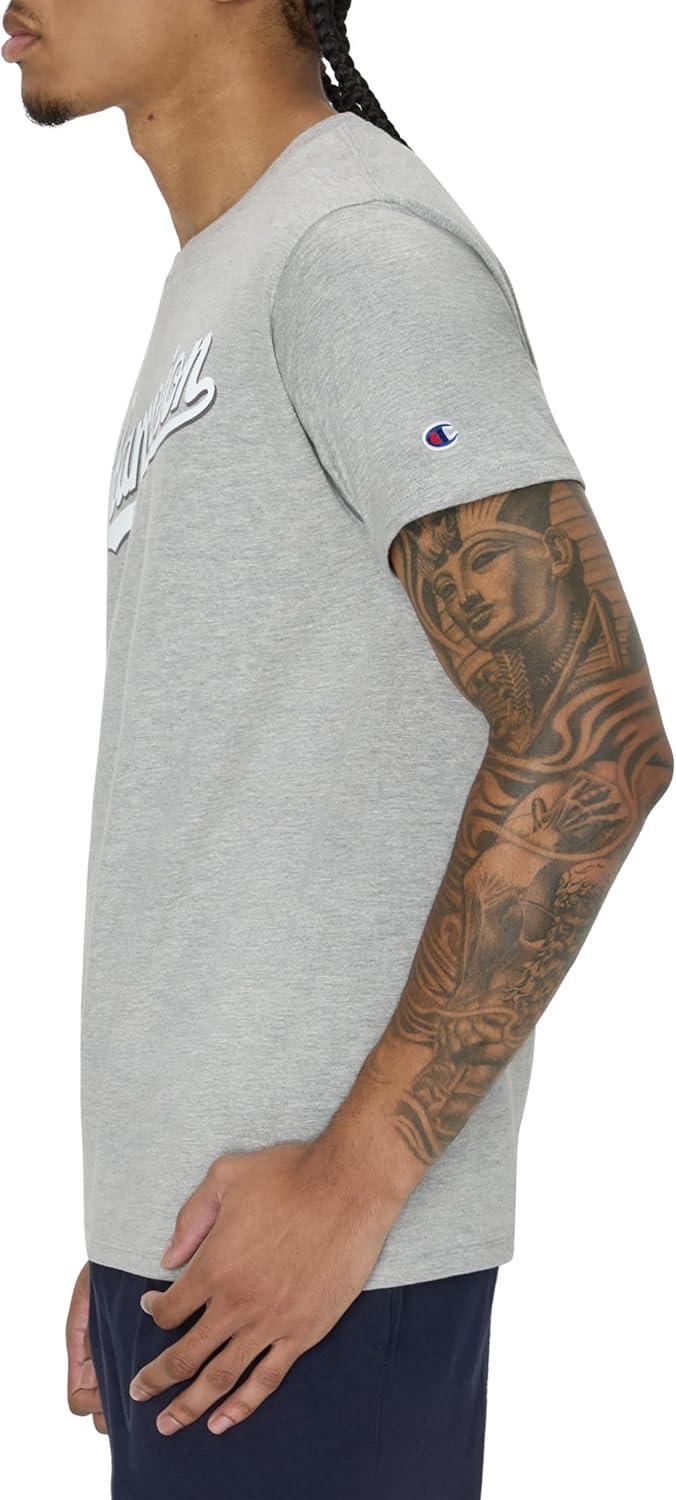 Champion Men’s Heritage Short Sleeve Tee, Men’s T-Shirts, Vintage Shirts, Men’s Tee Shirts, Graphics(Oxford Gray – Tonal Script Logo)