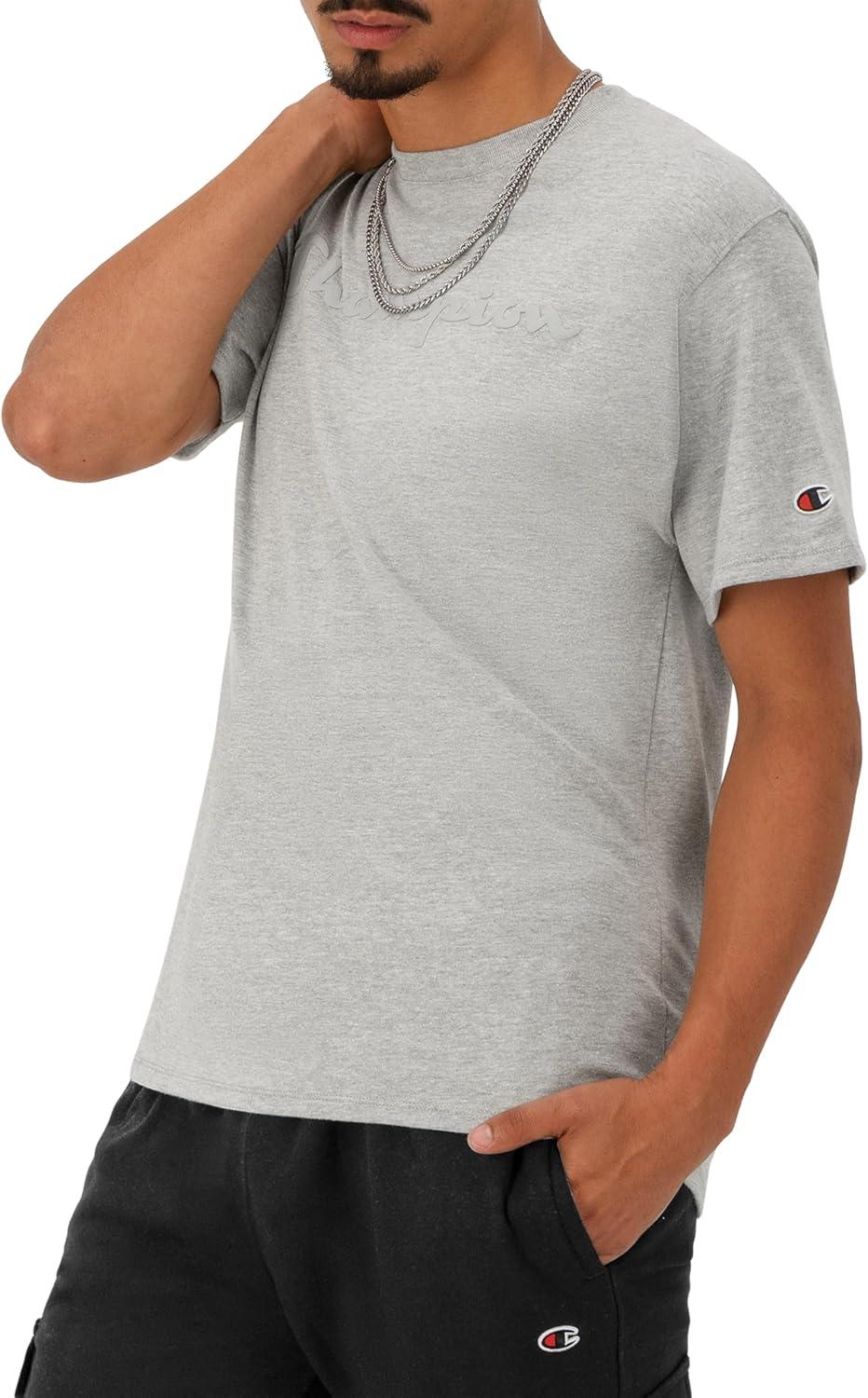 • Champion Men’s Heritage Short Sleeve Tee, Men’s T-Shirts, Vintage Shirts, Men’s Tee Shirts, Graphics(Oxford Gray – Tonal Script Logo)