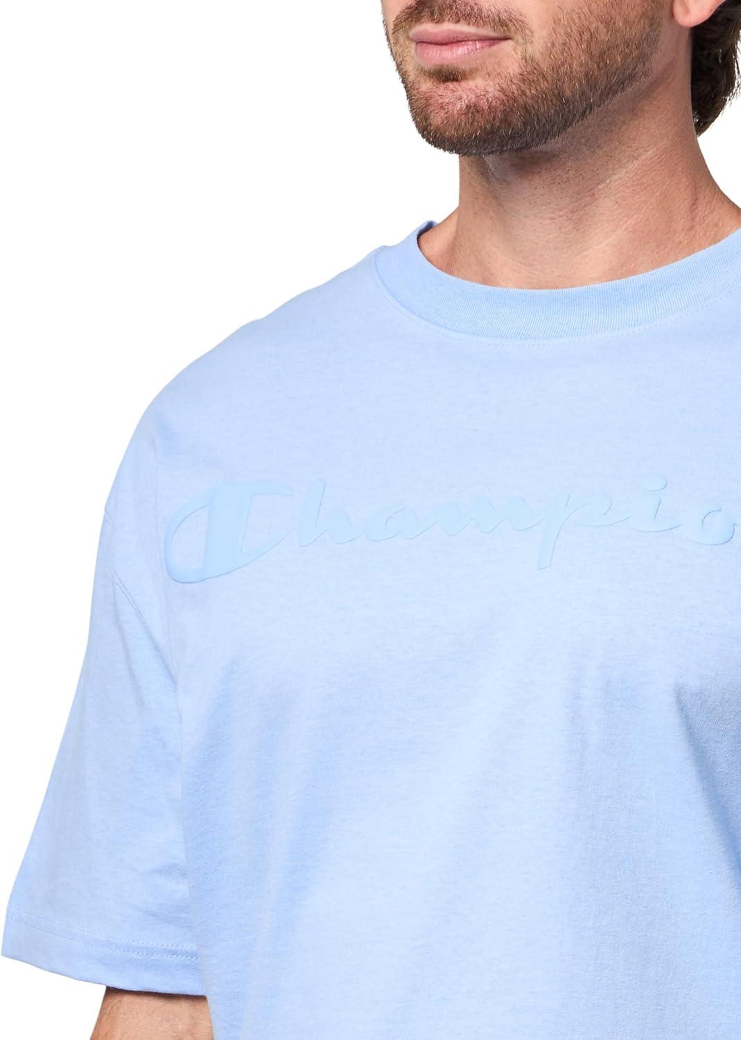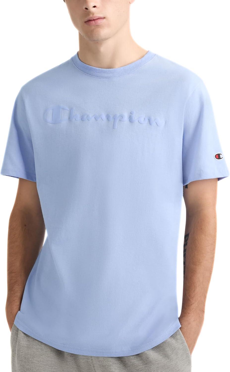 • Champion Men’s Heritage Short Sleeve Tee, Men’s T-Shirts, Vintage Shirts, Men’s Tee Shirts, Graphics(Plaster Blue – Classic Script Logo)
