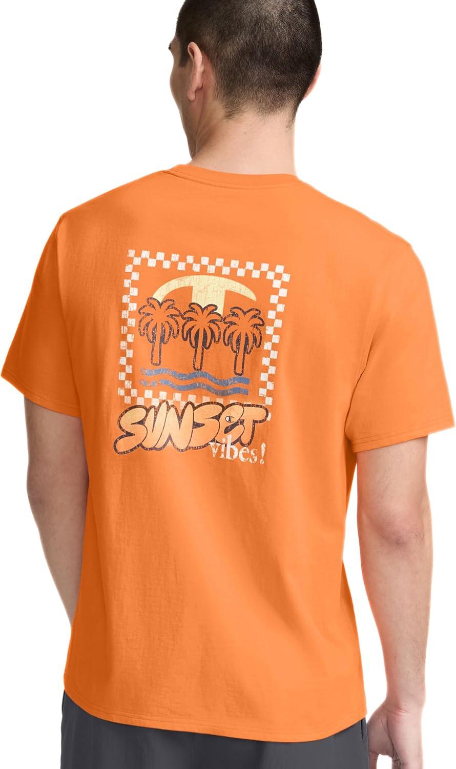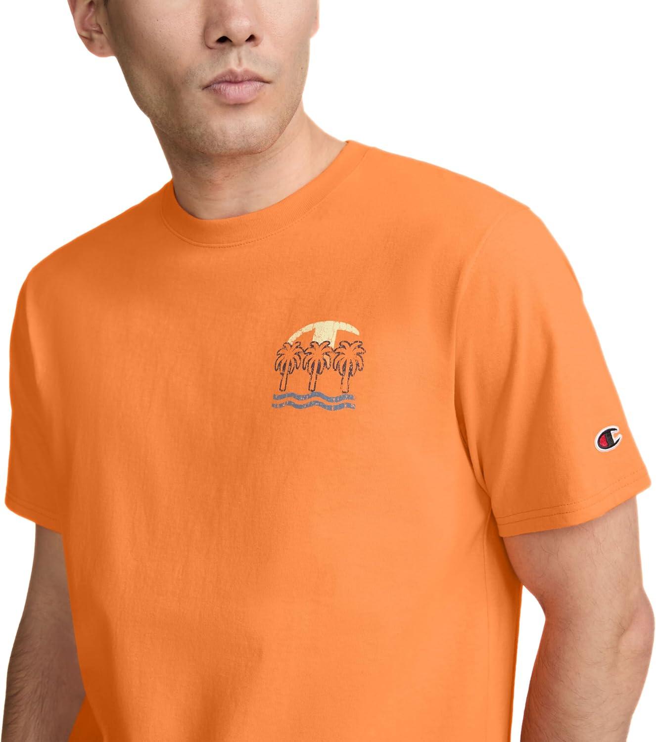 Champion Men’s Heritage Short Sleeve Tee, Men’s T-Shirts, Vintage Shirts, Men’s Tee Shirts, Graphics(Pop Orange – Sunset Vibes)