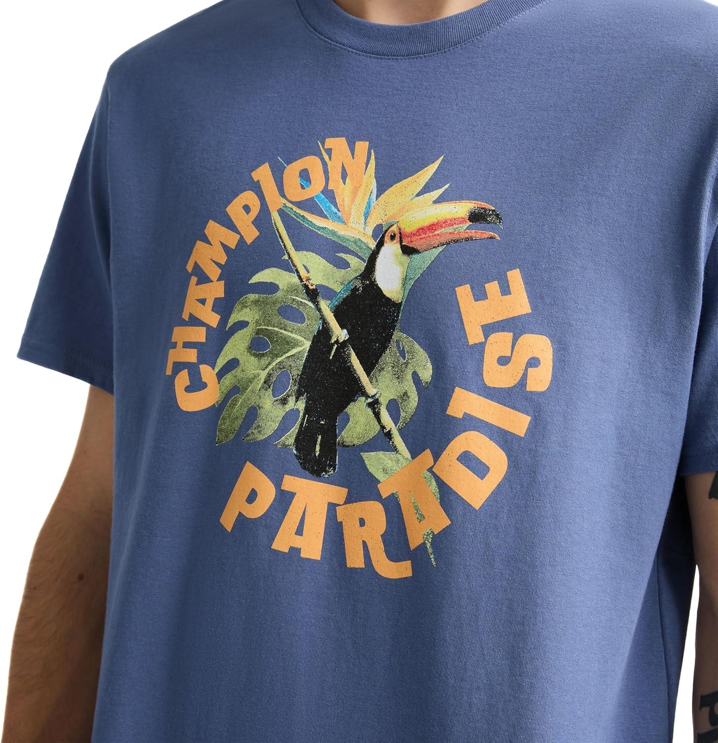 • Champion Men’s Heritage Short Sleeve Tee, Men’s T-Shirts, Vintage Shirts, Men’s Tee Shirts, Graphics(Sevenseas Blue – Paradise)