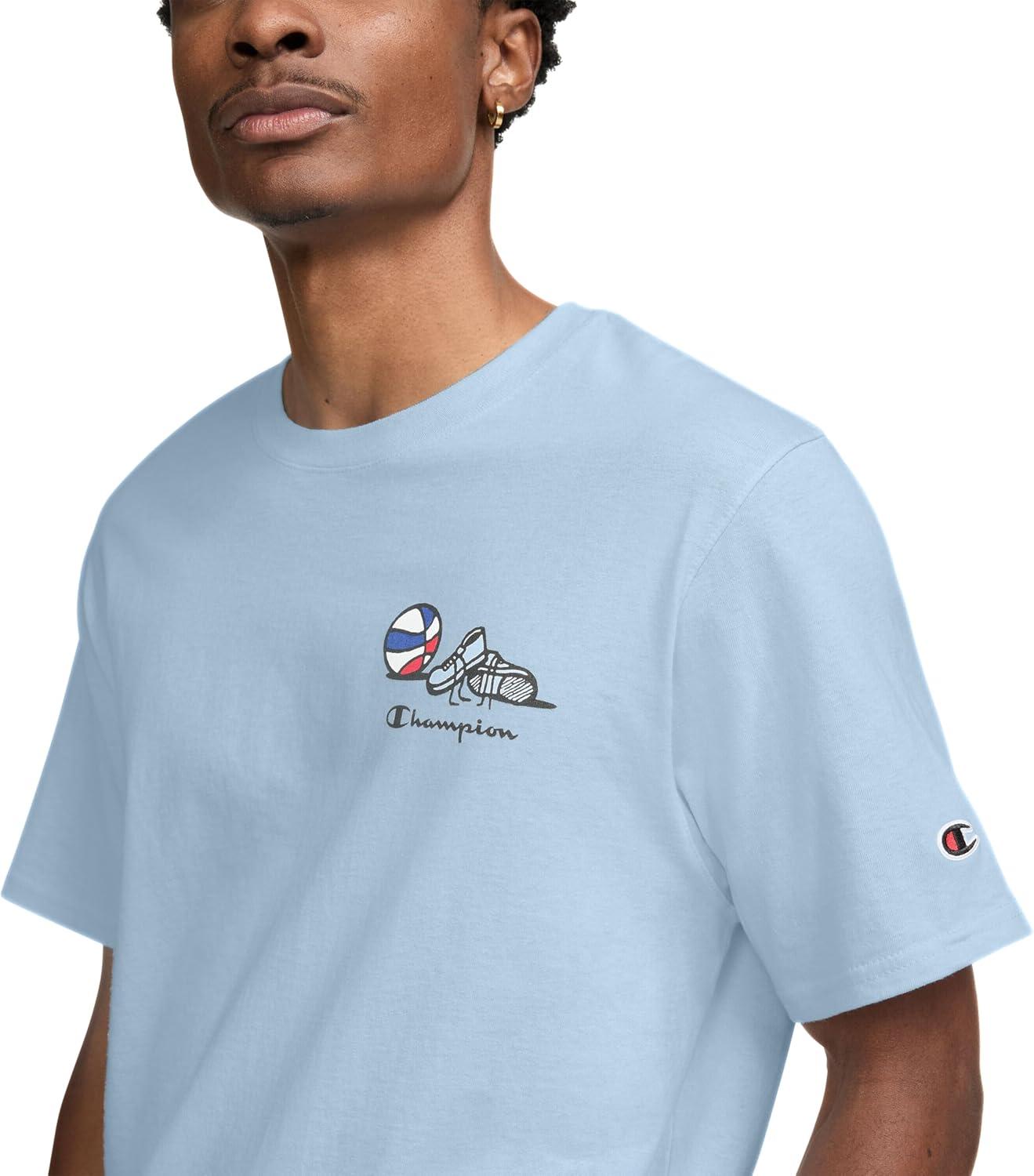 • Champion Men’s Heritage Short Sleeve Tee, Men’s T-Shirts, Vintage Shirts, Men’s Tee Shirts, Graphics(Spring Sky Blue – Cooked in the Usa)