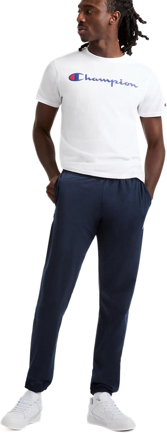 Champion Men’s Pants, Everyday Cotton, Lightweight Lounge, Knit Pants for Men (Reg. Or Big & Tall)(Black – C Patch Logo)