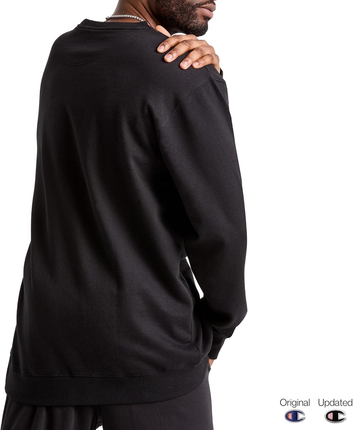 Champion Men’s Sweatshirt, Fleece Midweight Crewneck Sweatshirt (Reg. Or Big & Tall)(Black – Classic Script Logo)