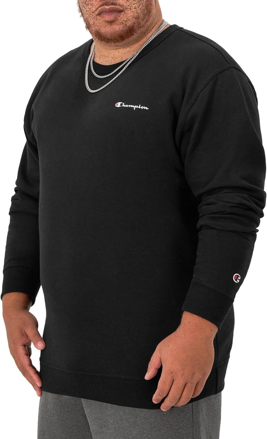 Champion Men’s Sweatshirt, Fleece Midweight Crewneck Sweatshirt (Reg. Or Big & Tall)(Black Script)