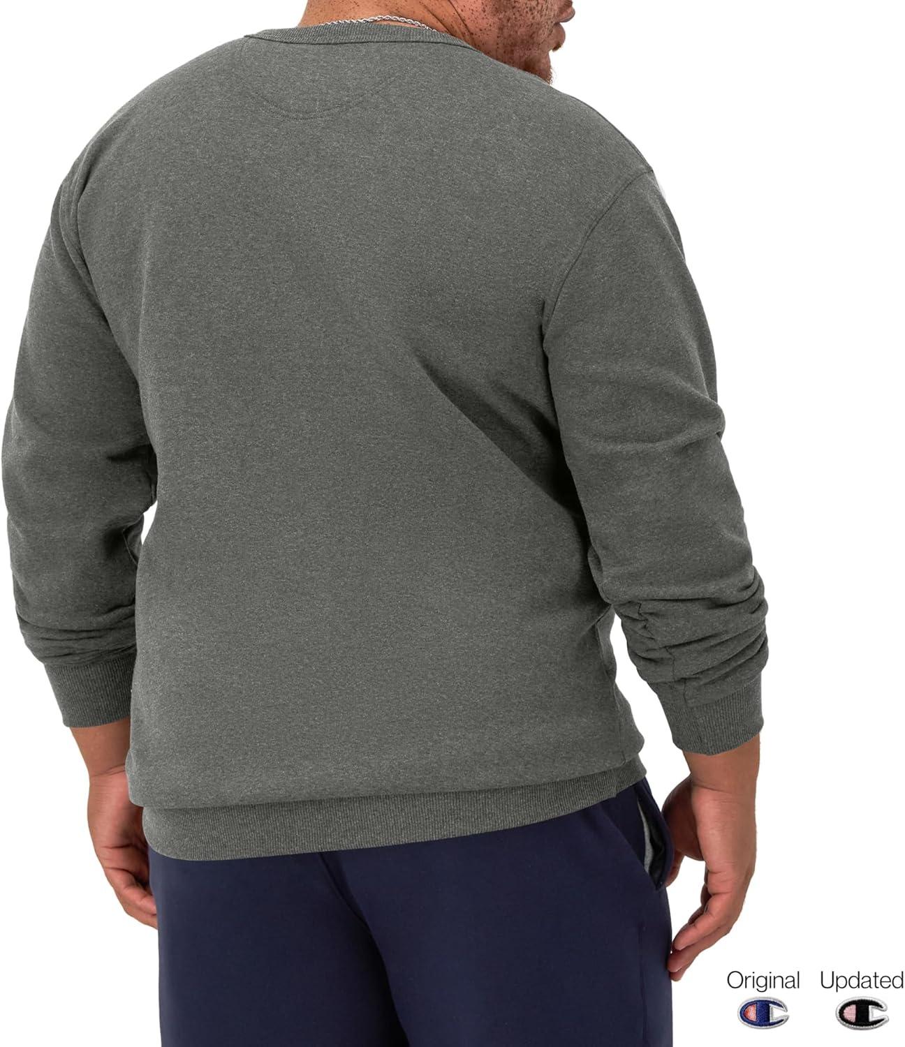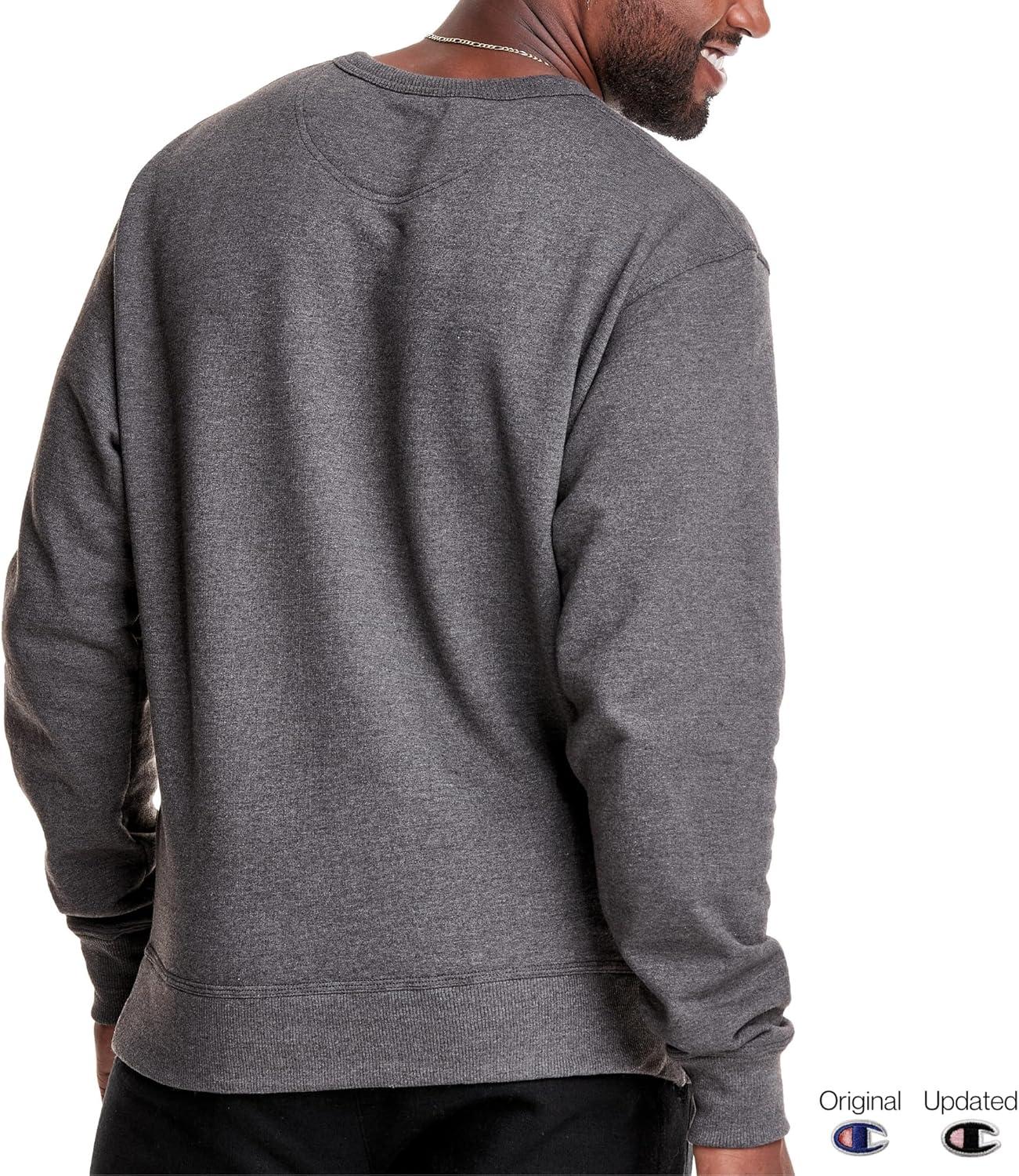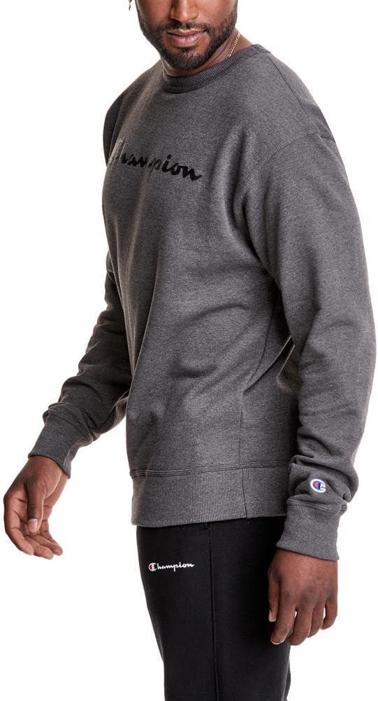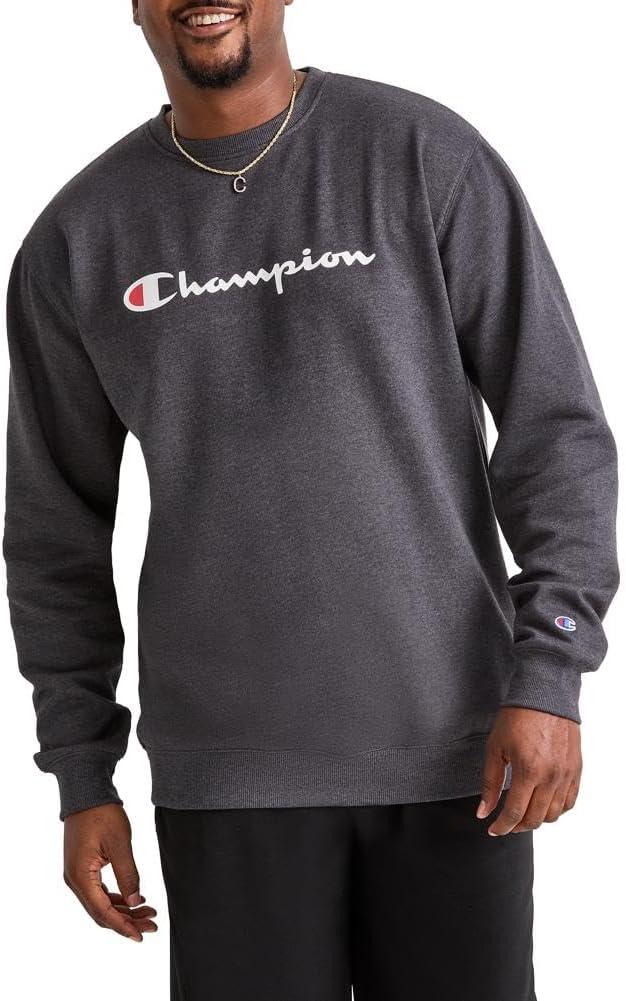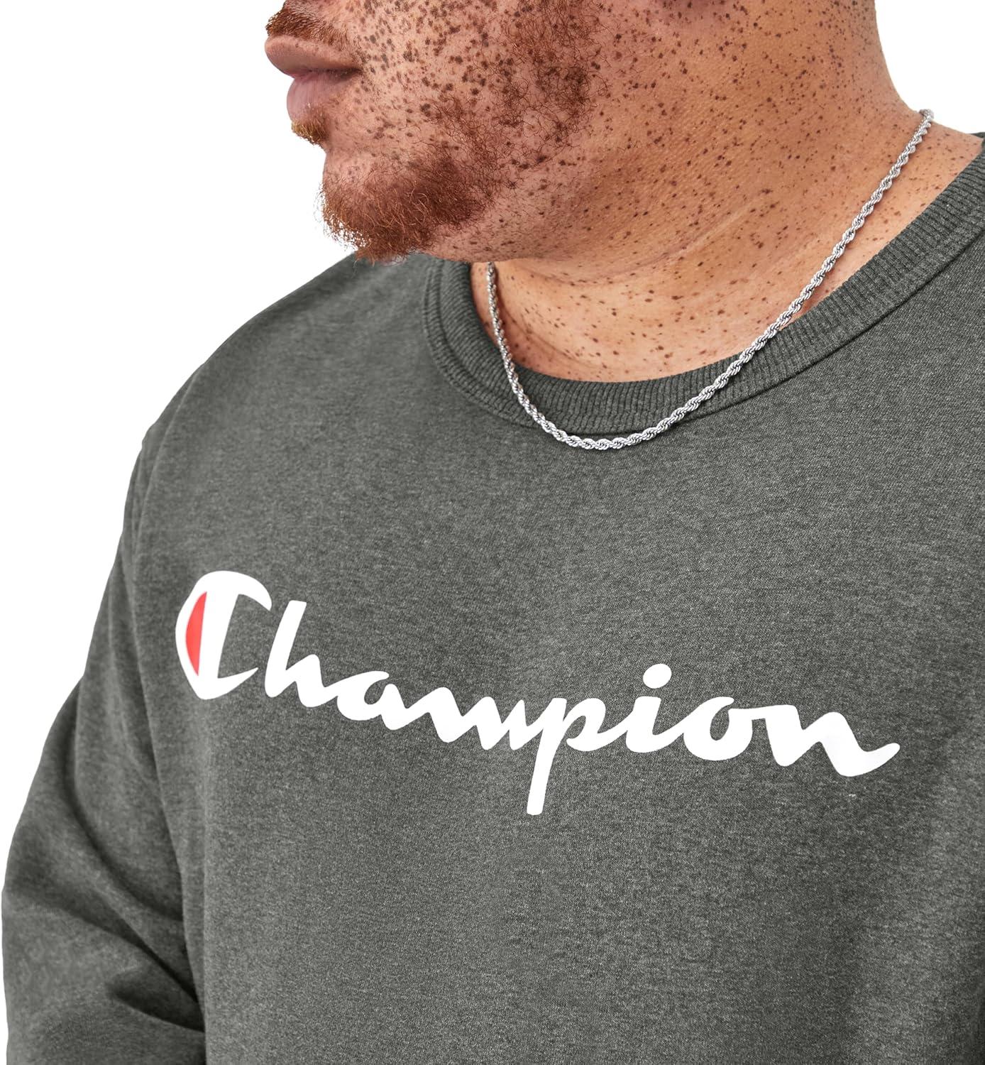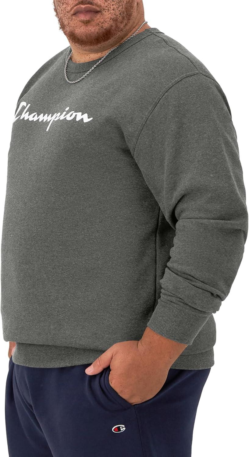 Champion Men’s Sweatshirt, Fleece Midweight Crewneck Sweatshirt (Reg. Or Big & Tall)(Granite Heather – Classic Script Logo)