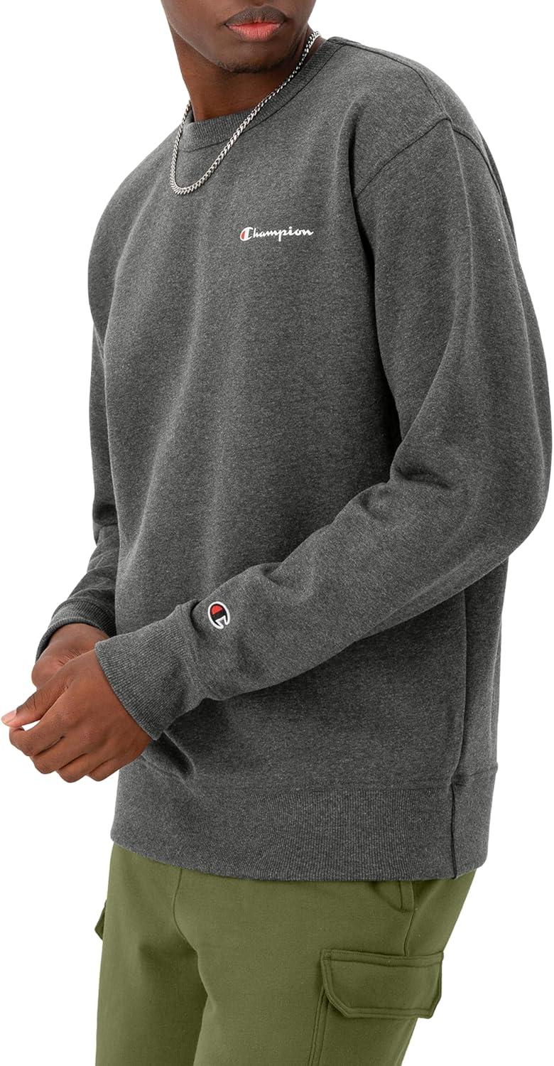 Champion Men’s Sweatshirt, Fleece Midweight Crewneck Sweatshirt (Reg. Or Big & Tall)(Granite Heather Small – Small Script Logo)