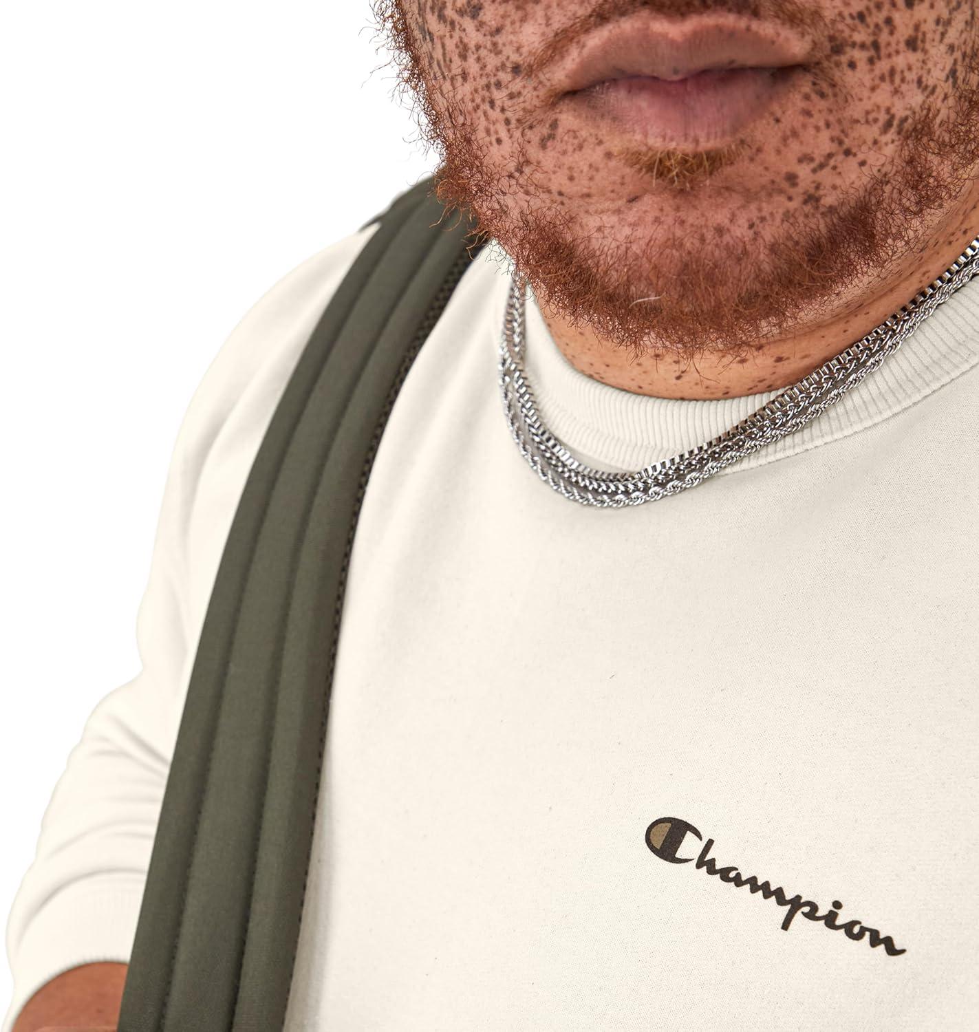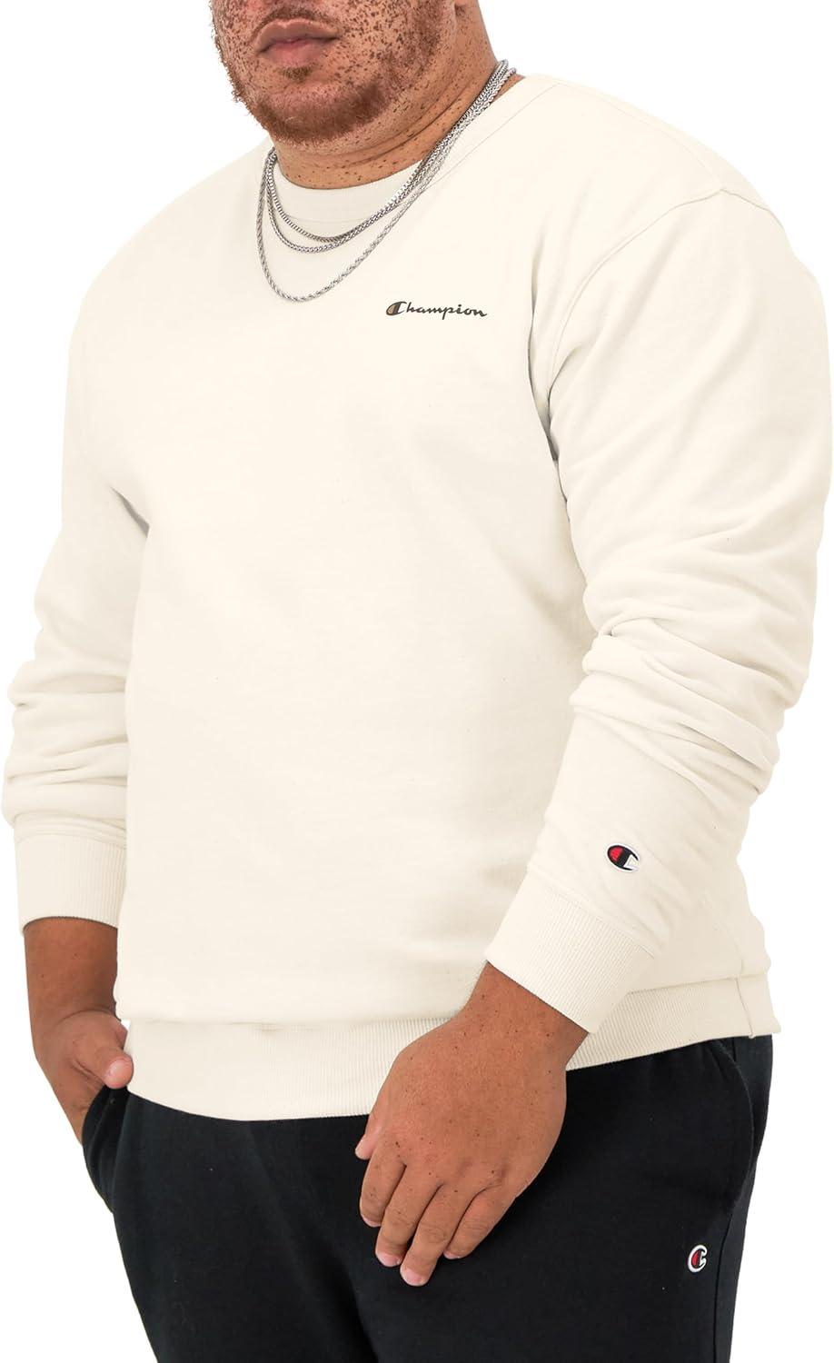Champion Men’s Sweatshirt, Fleece Midweight Crewneck Sweatshirt (Reg. Or Big & Tall)(Natural Small Script)