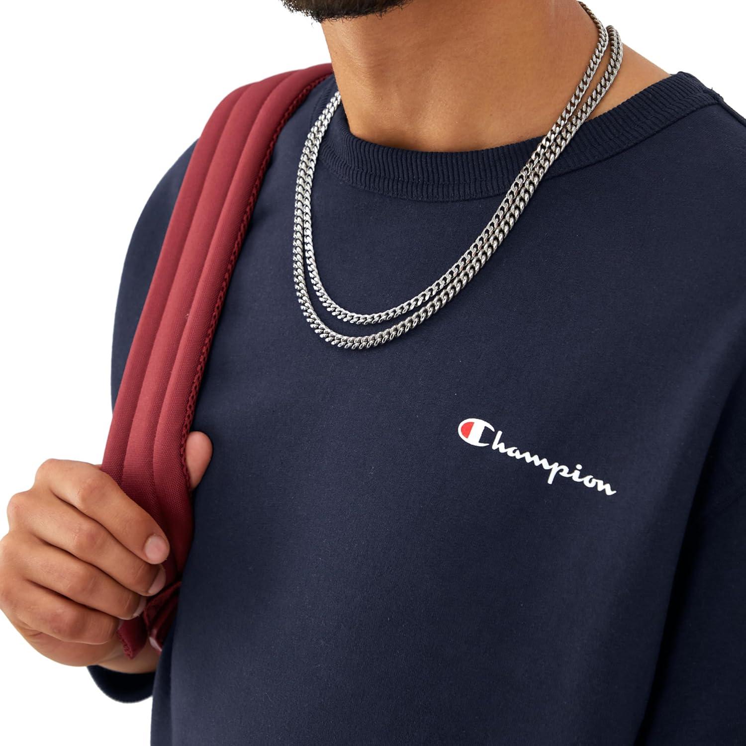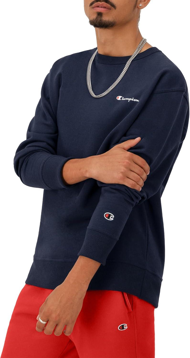 Champion Men’s Sweatshirt, Fleece Midweight Crewneck Sweatshirt (Reg. Or Big & Tall)(Navy Small – Small Script Logo)