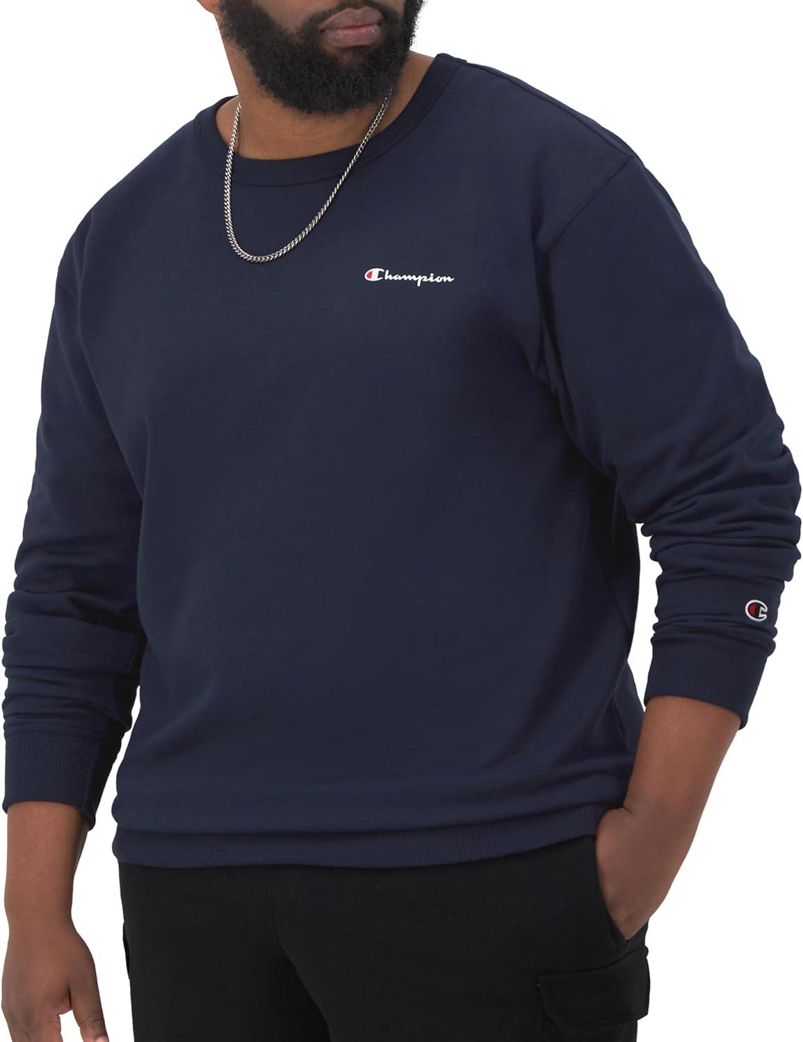 Champion Men’s Sweatshirt, Fleece Midweight Crewneck Sweatshirt (Reg. Or Big & Tall)(Navy Small Script)