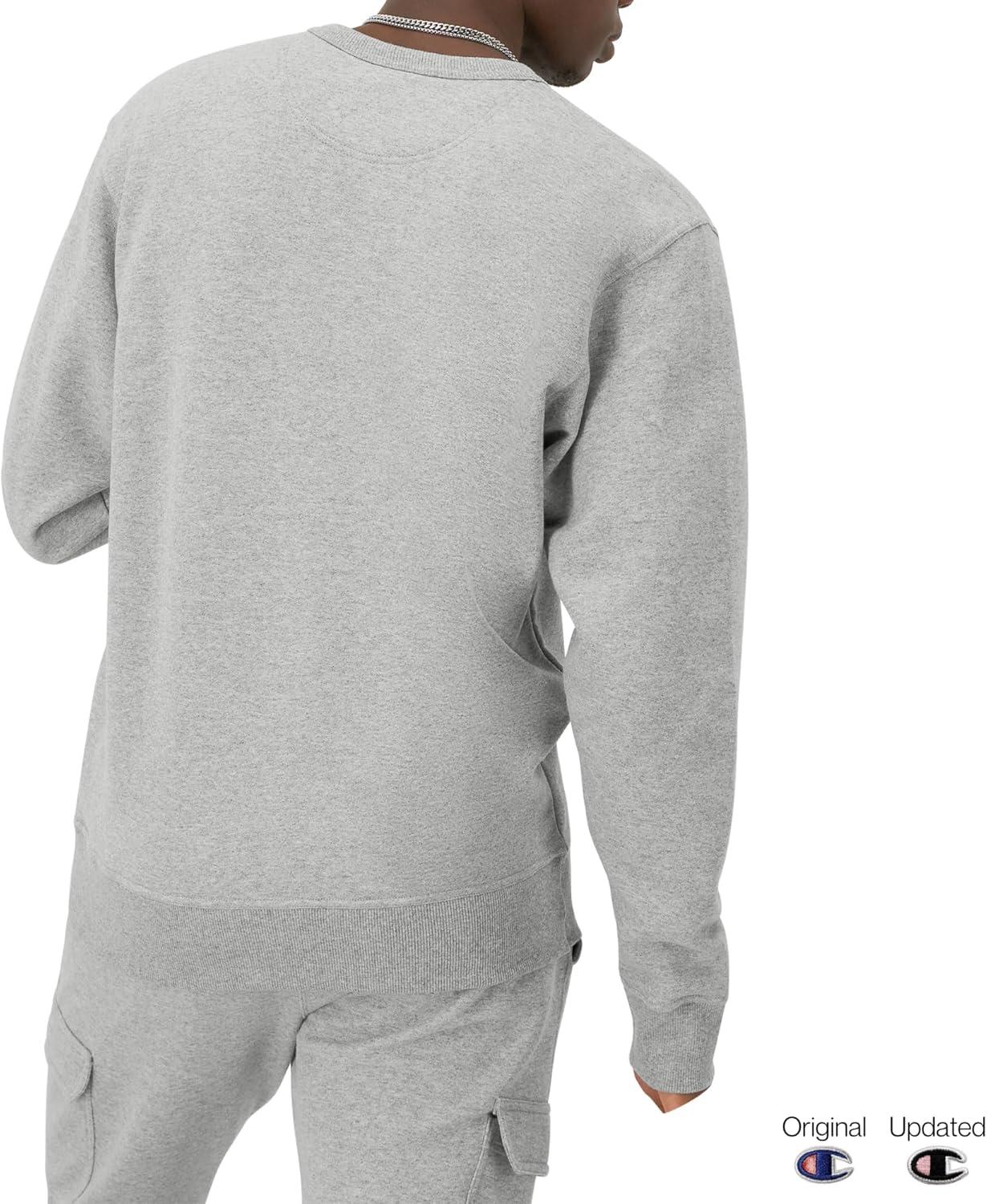 Champion Men’s Sweatshirt, Fleece Midweight Crewneck Sweatshirt (Reg. Or Big & Tall)(Oxford Gray – Classic Script Logo)