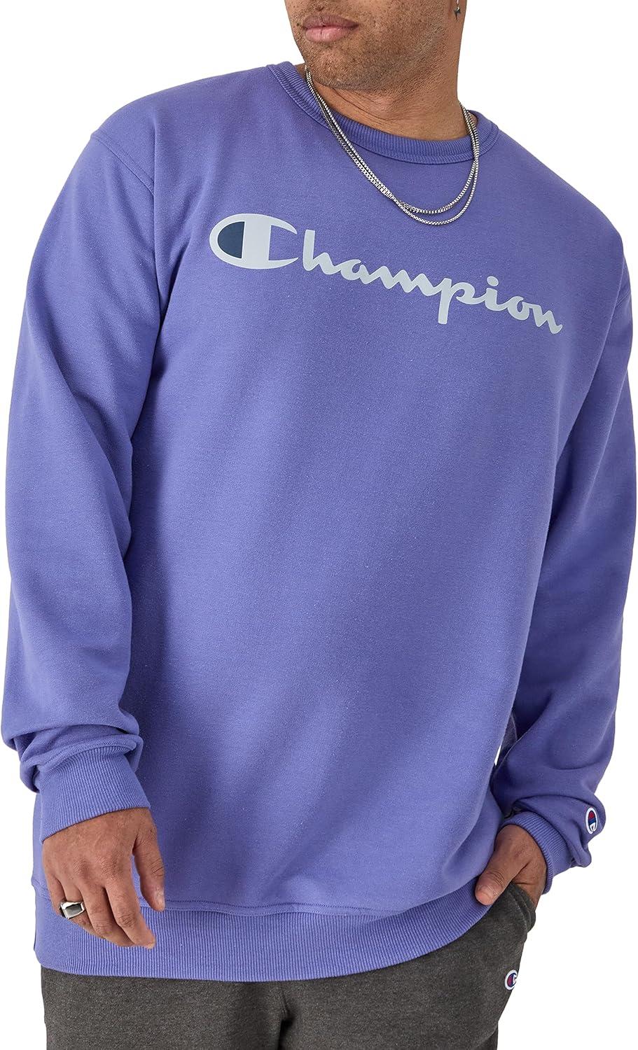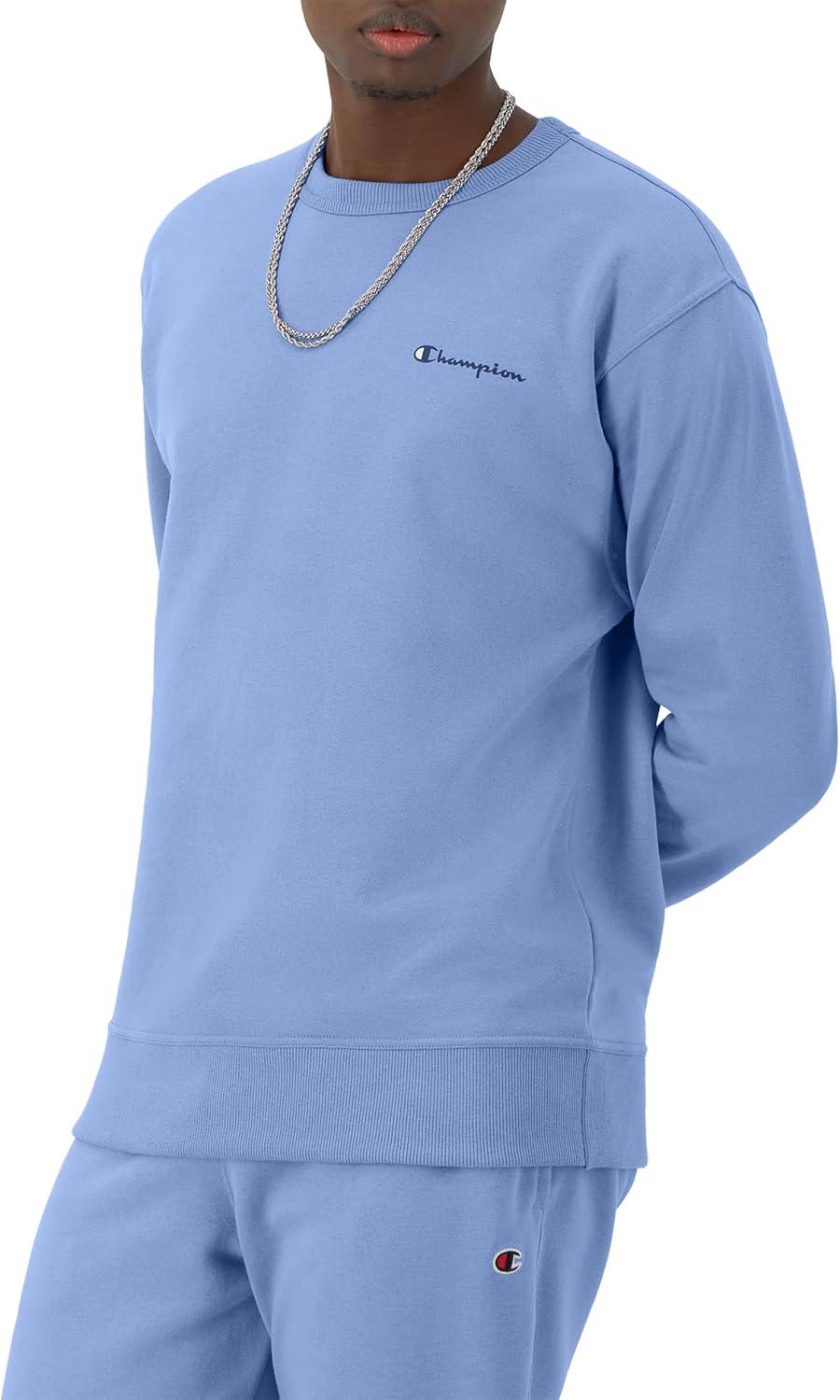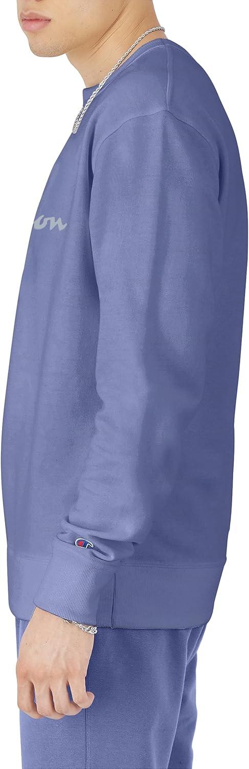 Champion Men’s Sweatshirt, Fleece Midweight Crewneck Sweatshirt (Reg. Or Big & Tall)(Stone Crush Blue – Classic Script Logo)