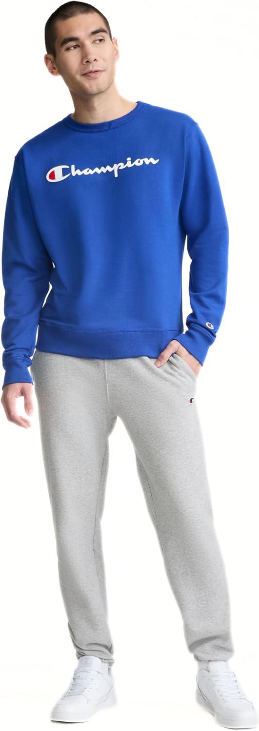 Champion Men’s Sweatshirt, Fleece Midweight Crewneck Sweatshirt (Reg. Or Big & Tall)(White Script)