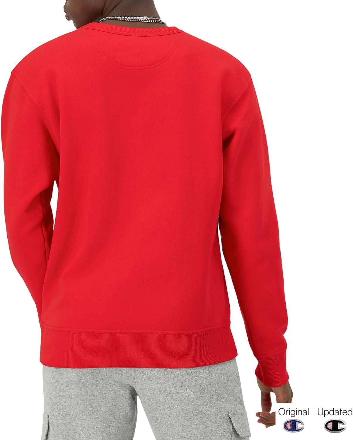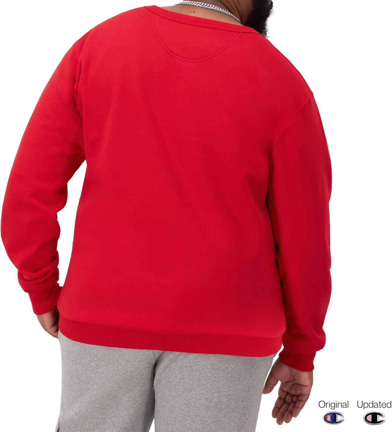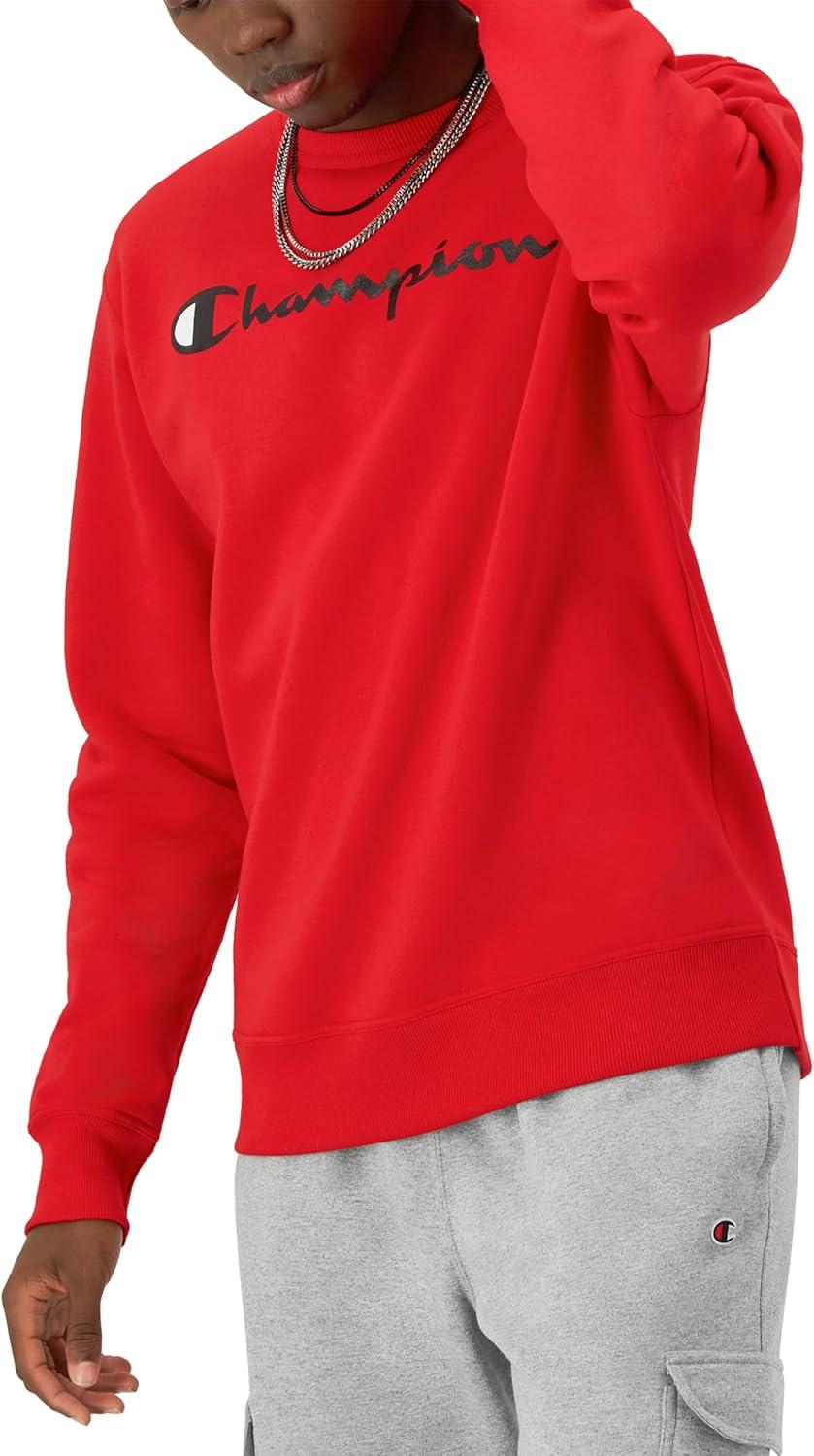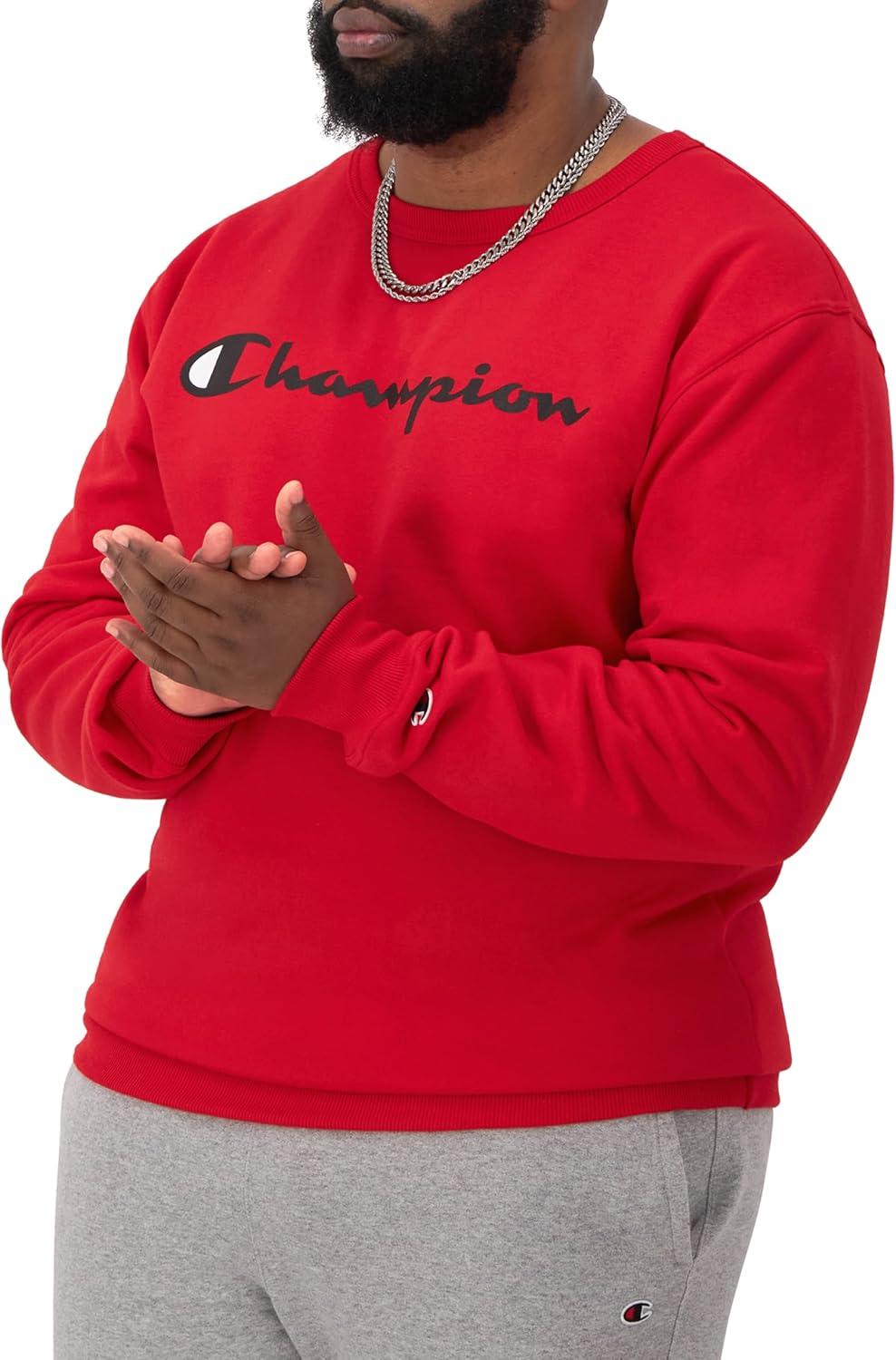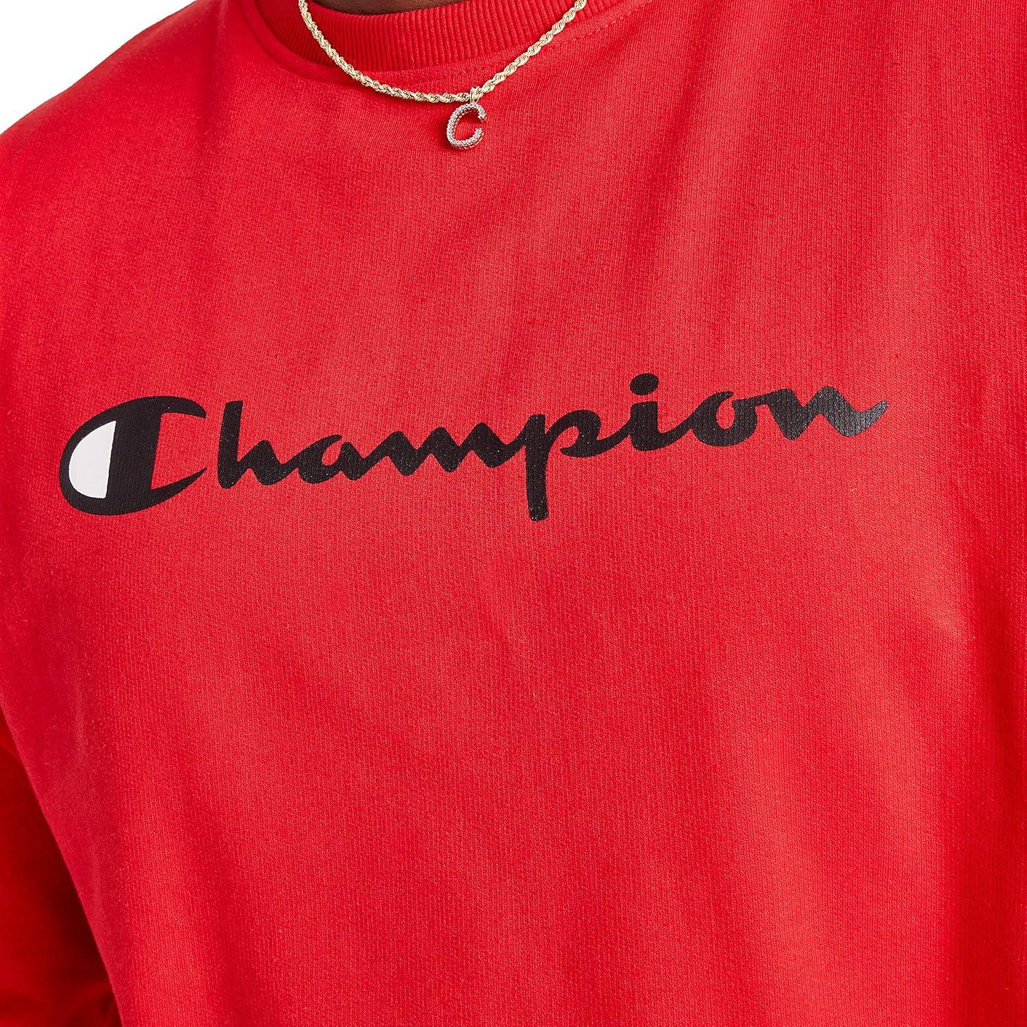 Champion Men’s Sweatshirt, Fleece Midweight Crewneck Sweatshirt (Reg. Or Big & Tall)(Team Red Scarlet – Classic Script Logo)