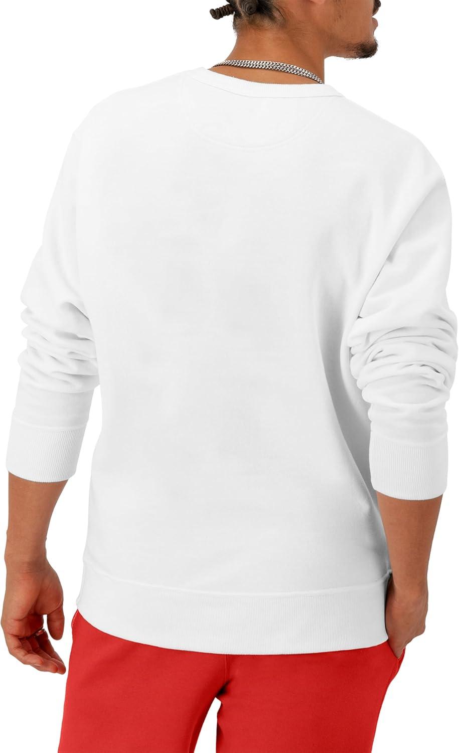 Champion Men’s Sweatshirt, Fleece Midweight Crewneck Sweatshirt (Reg. Or Big & Tall)(White Small Script)