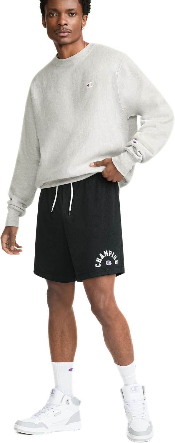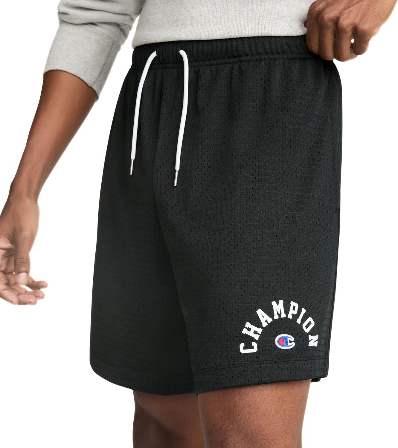 Champion Men’s Yearbook Mesh Short, 7″, Arch Logo(Black)