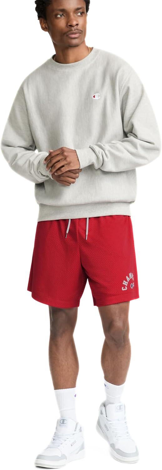 Champion Men’s Yearbook Mesh Short, 7″, Arch Logo(Spirited Red)