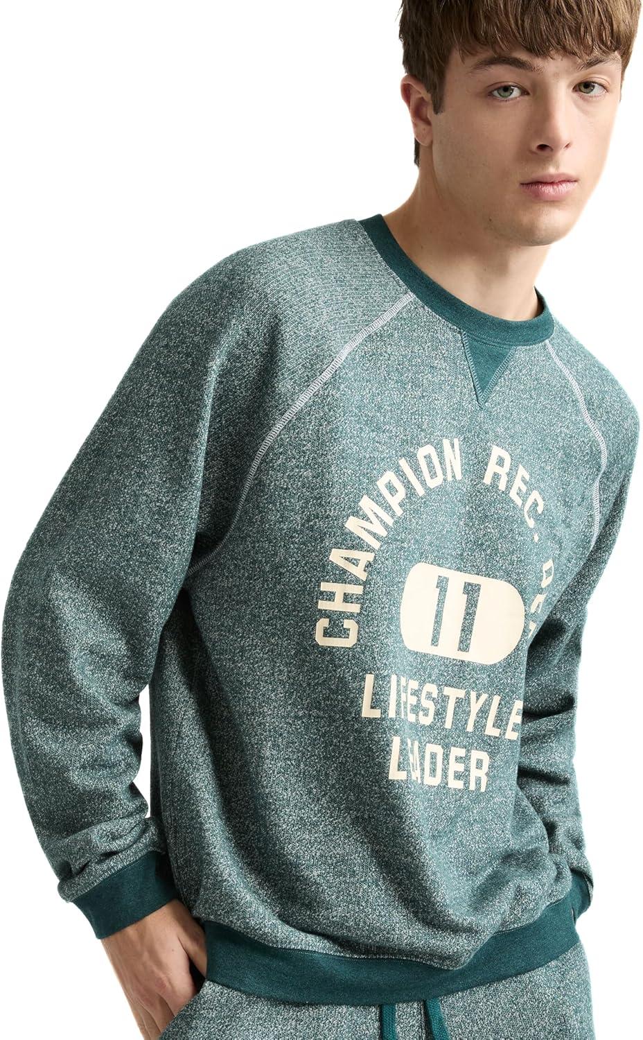 Champion Men’s Yearbook Raglan Crewneck Sweatshirt, Crest(Emerald Allure Heather)