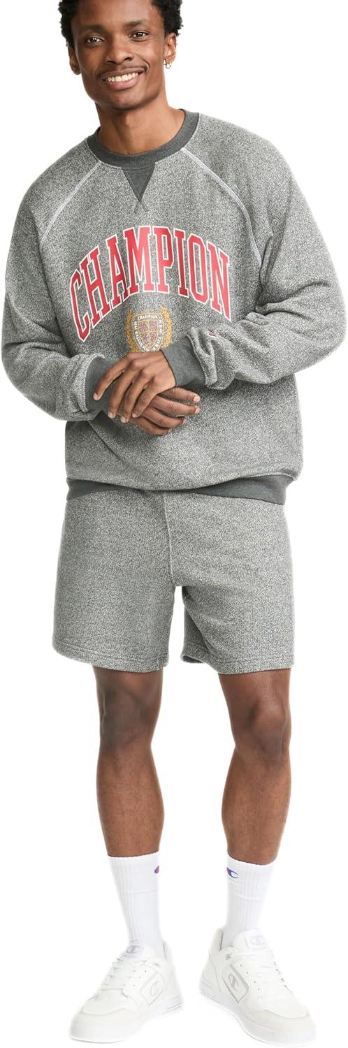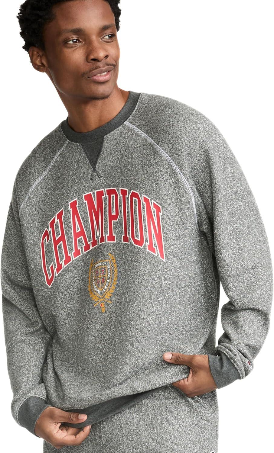 Champion Men’s Yearbook Raglan Crewneck Sweatshirt, Crest(Nine Iron Heather)