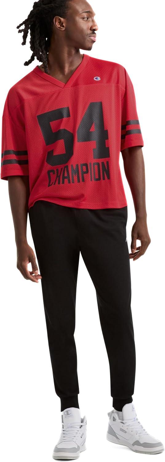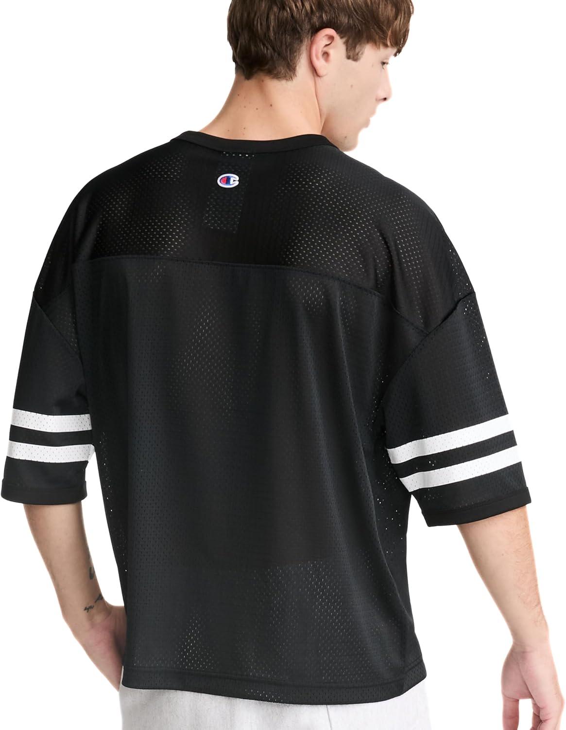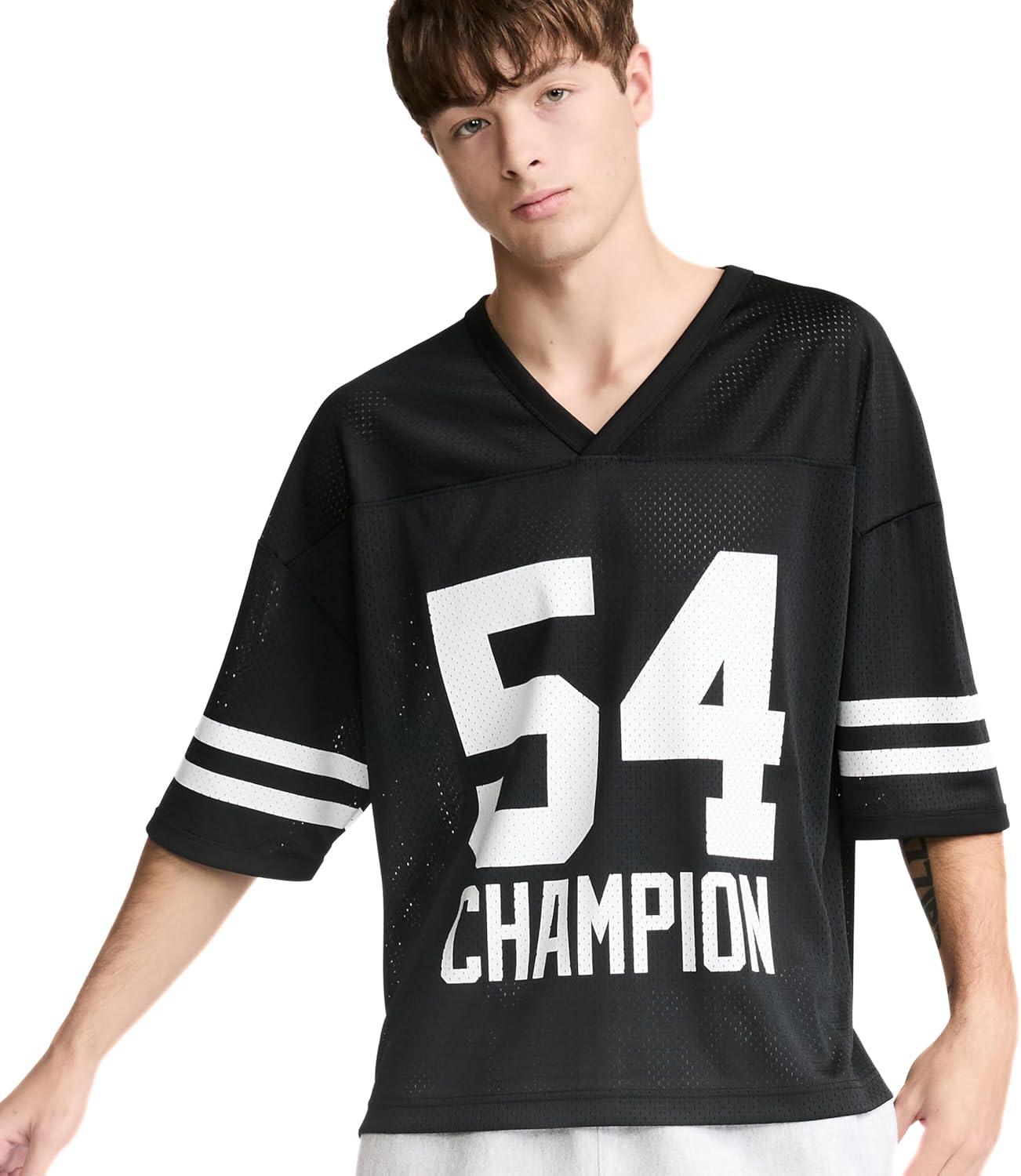 Champion Men’s Yearbook Mesh Football Tee, V-Neck(Black)