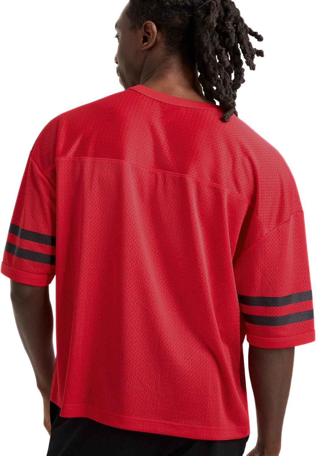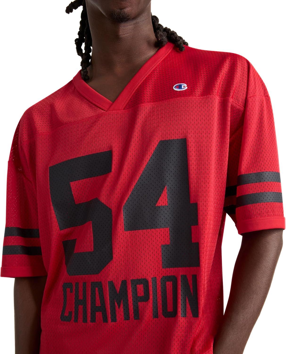 Champion Men’s Yearbook Mesh Football Tee, V-Neck(Spirited Red)