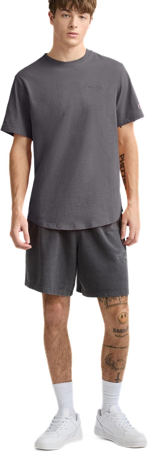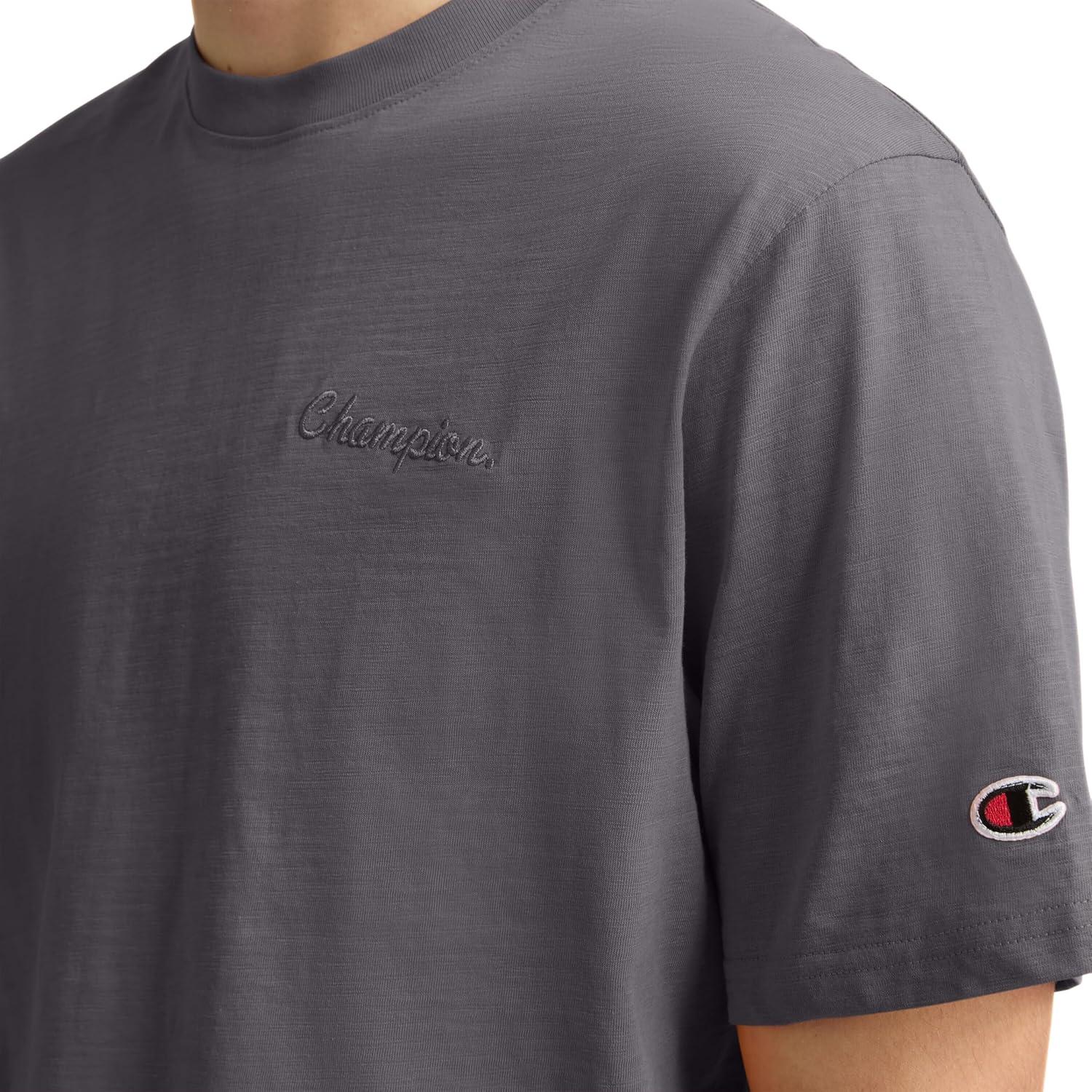 Champion Men’s Curved Hem Slub T-Shirt, Embroidered Script(Nine Iron)