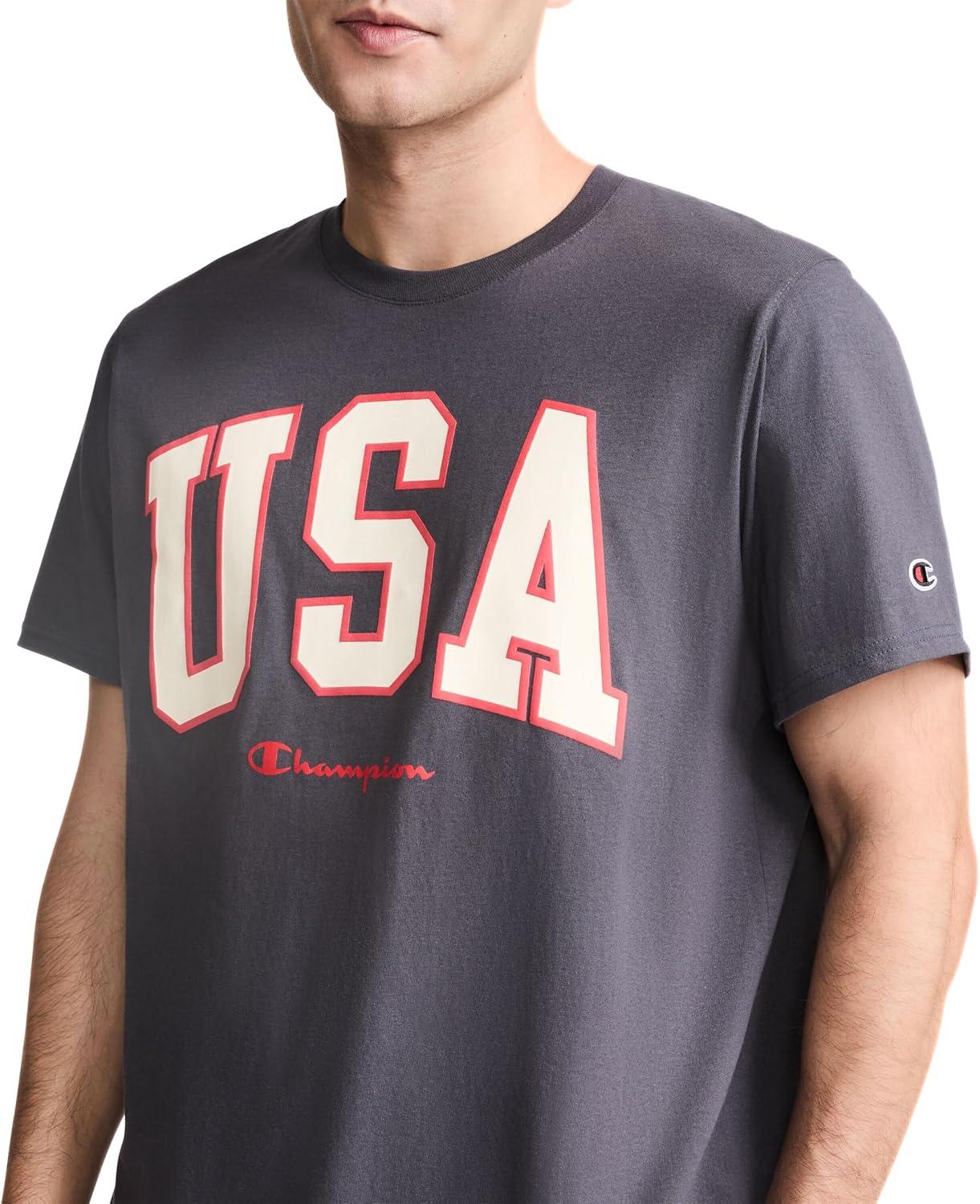 Champion Men’s Heritage Short Sleeve Tee, Men’s T-Shirts, Vintage Shirts, Men’s Tee Shirts, Graphics(Spirited Red – Usa Block Logo)