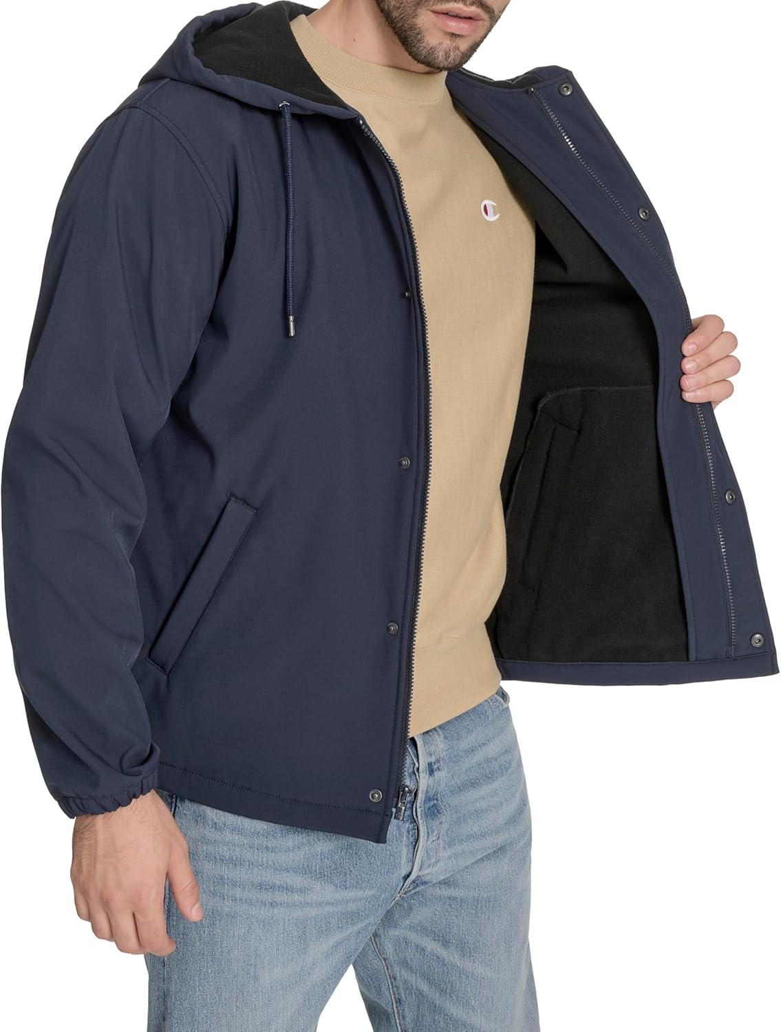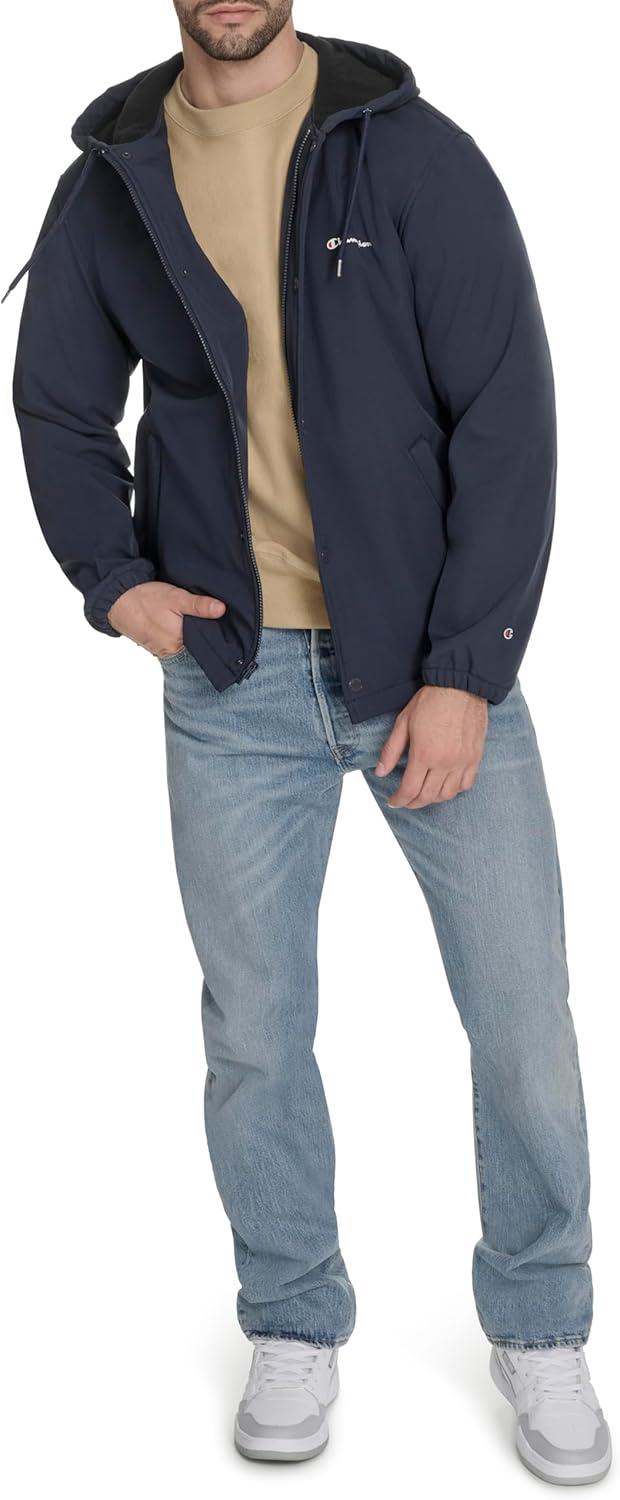 Champion mens Hooded Coaches Rain Jacket(Peacoat Soft Shell)